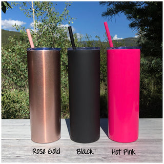 These super cute 20 ounce Stainless Steel Skinny Tumblers are a perfect for you or to give as a gift. They come in multiple gorgeous colors and keep your drinks cold for up to 24 hours and hot up to 12 hours.