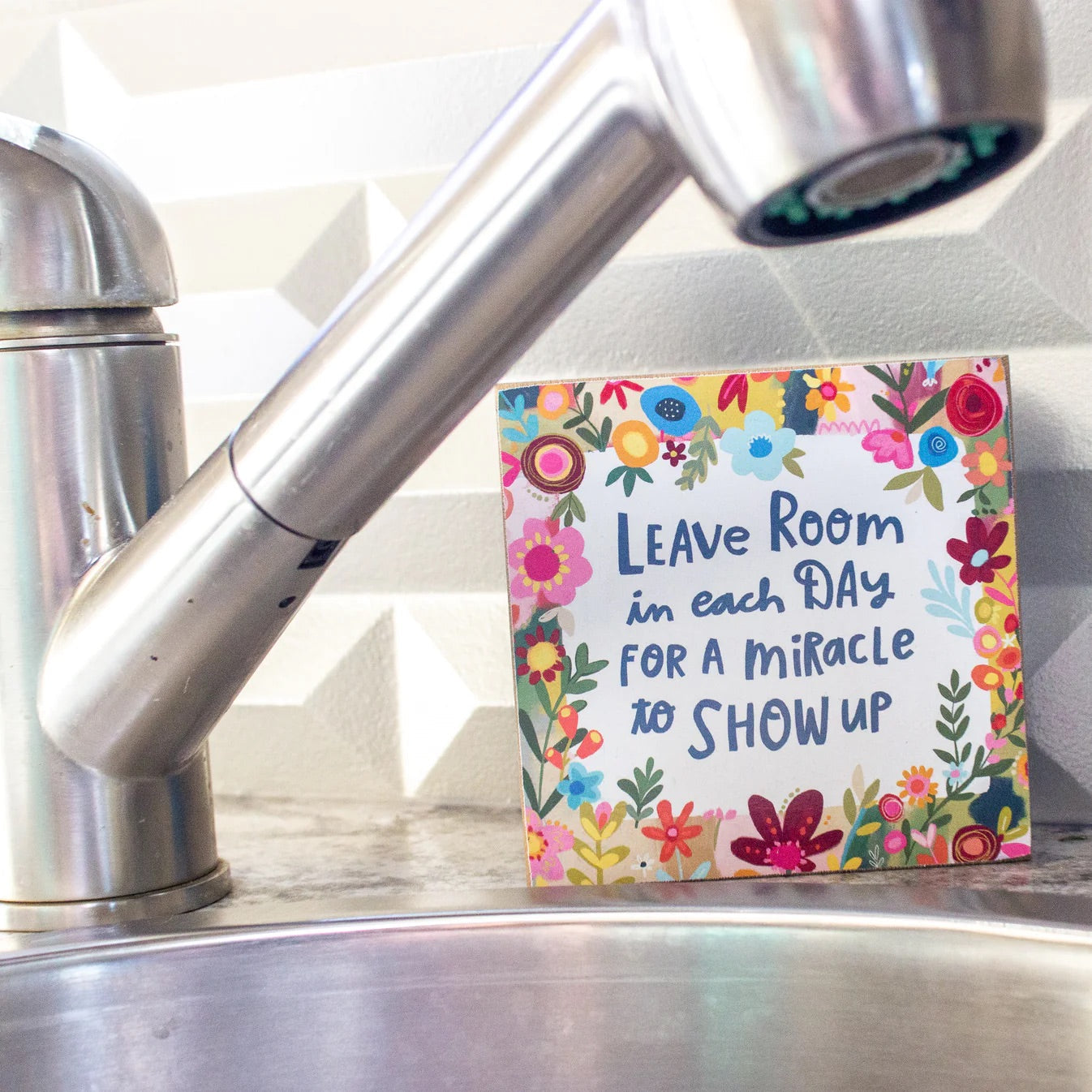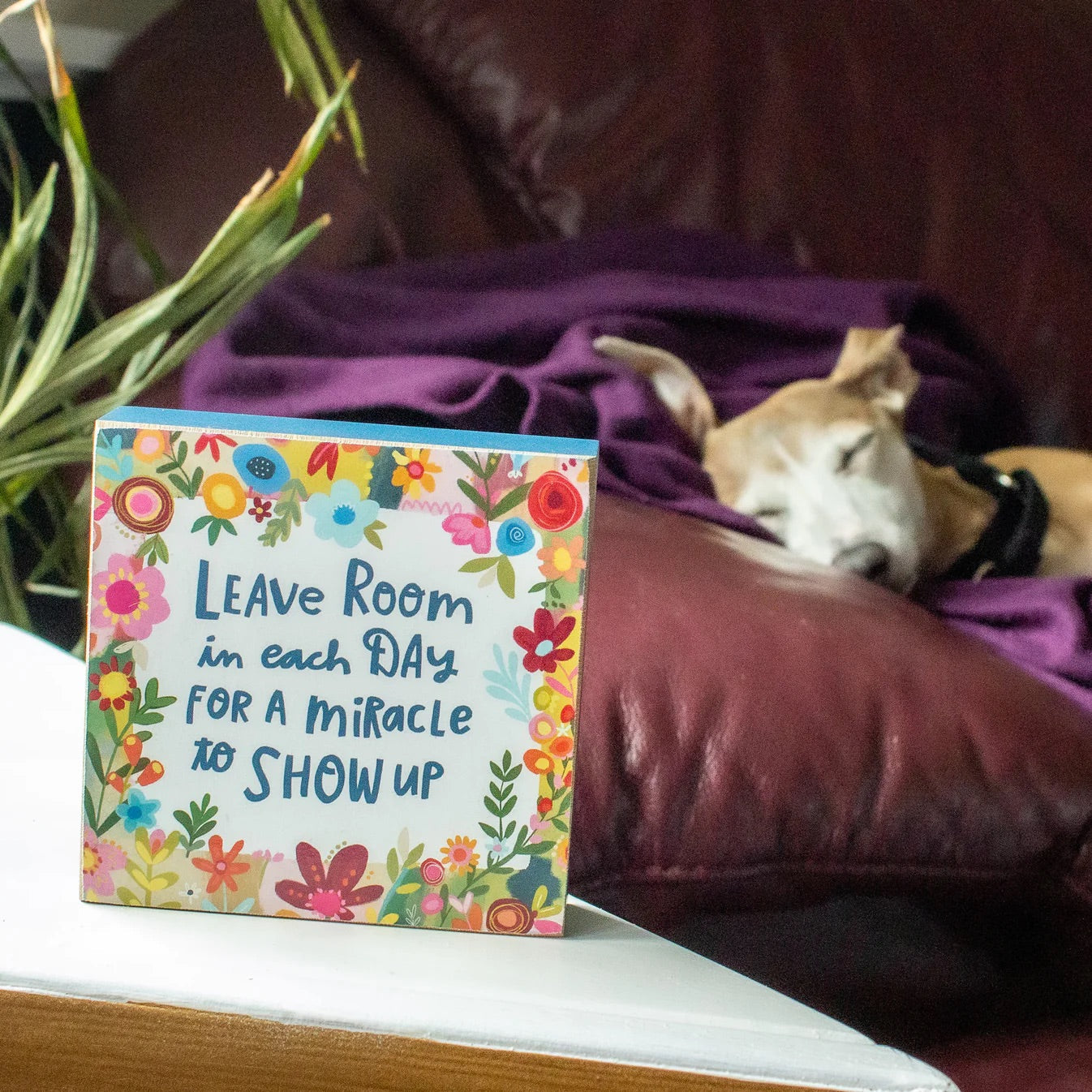 Meet THE inspirational accent you've been searching for - and display it YOUR way! This is your perfect reminder that miracles abound daily - we just need to take the time to recognize them. (Psst...Even your next breath is a miracle!) The vibrant hand illustrated design adds an adorable pop of color to home offices, dorm rooms - and even your bedside table! Pick a place in your home, car - even RV - where you'll see this message often...or gift it to someone who needs to hear it!