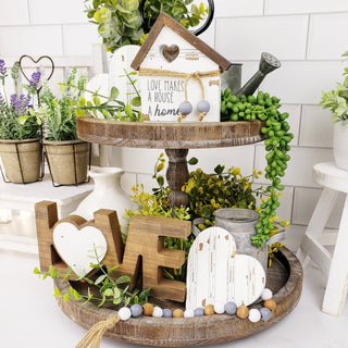 NOTE: The tiered tray and other items shown are for display purposes only and are NOT included in the decor set. Everything included is listed below. Sizes are approximate. Colors variations and styles may vary.