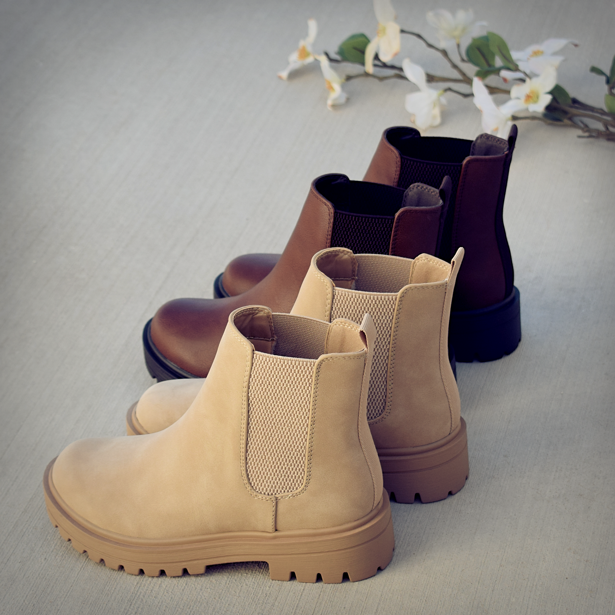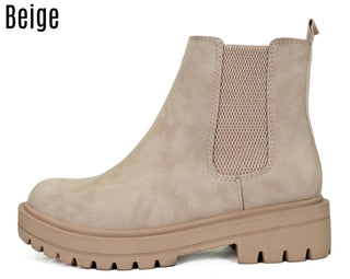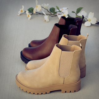 This is a versatile mid height boot you can wear to any activity. This beautiful boot features a lug sole and chunky block heel. The stretchy accents and pull tag make them easy to pull on and off. The lightly cushioned insole provides a comfortable fit for all-day wear.