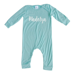 Our silky long sleeve rompers are a perfect year round staple! This romper comes personalized with baby's name in our "Lush" font.