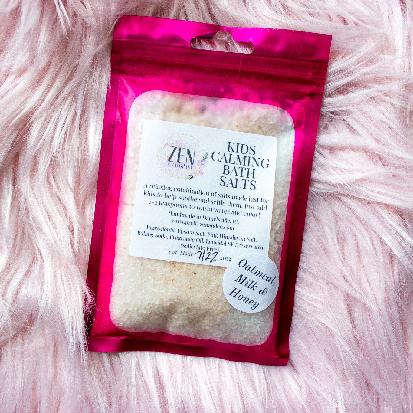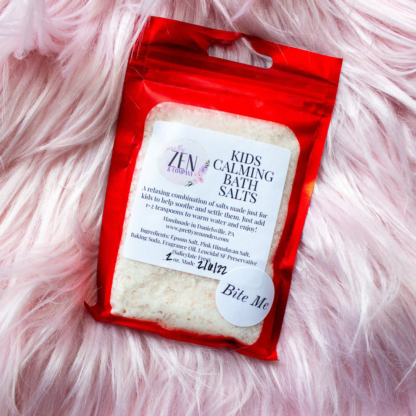 Ingredients: Epsom Salt, Pink Himalayan Salt, Baking Soda, Fragrance Oil, Leucidal SF Preservative (Salicylate Free)