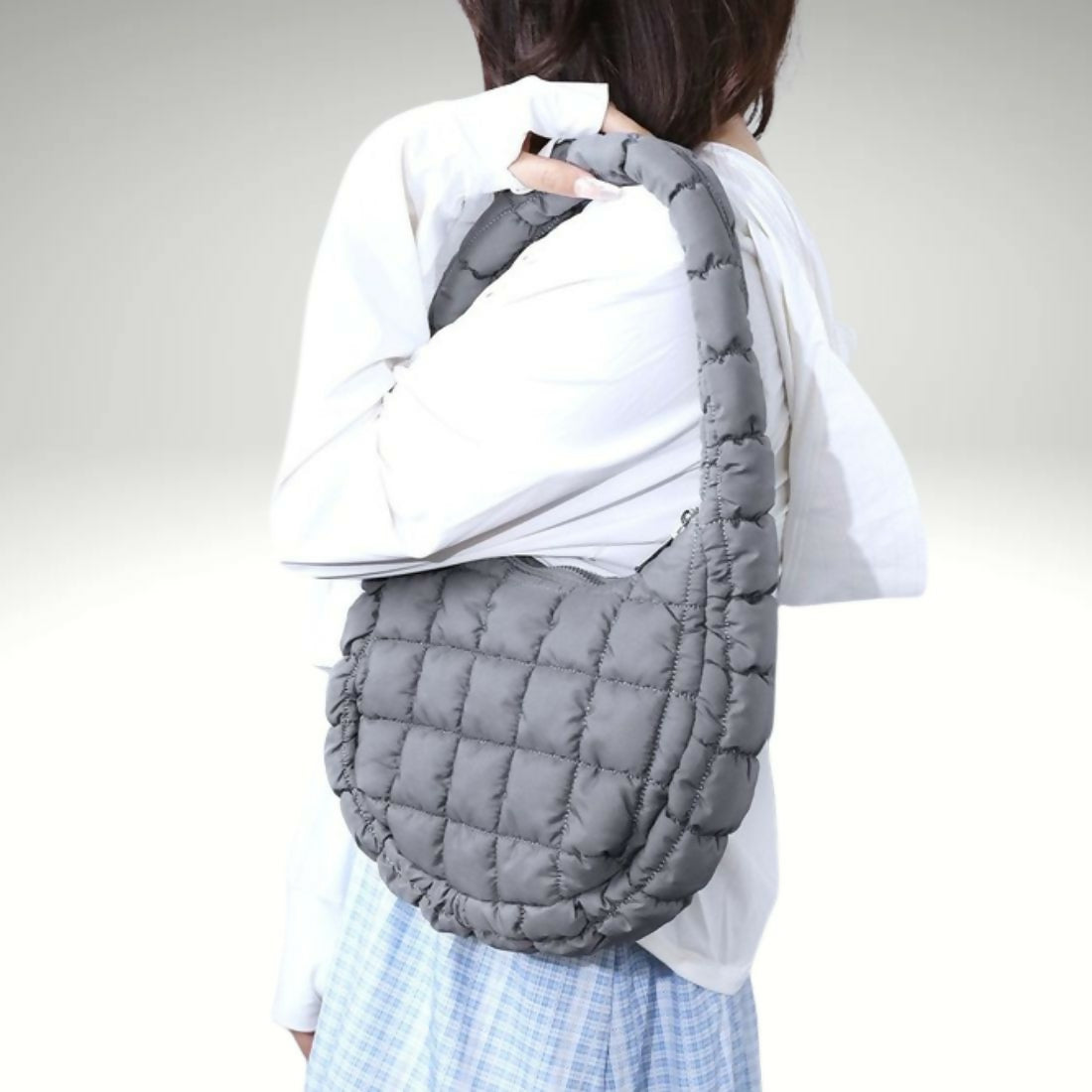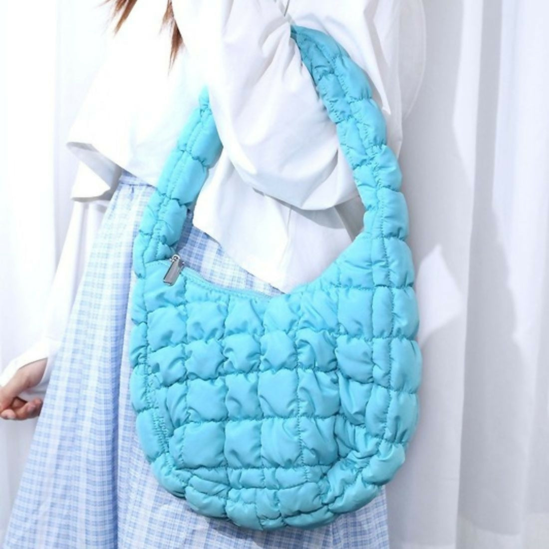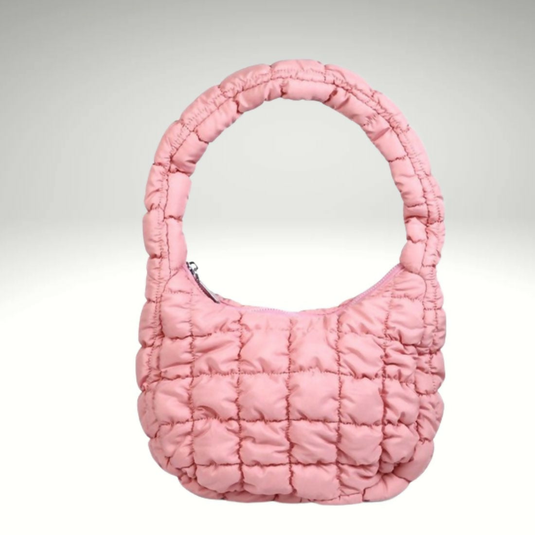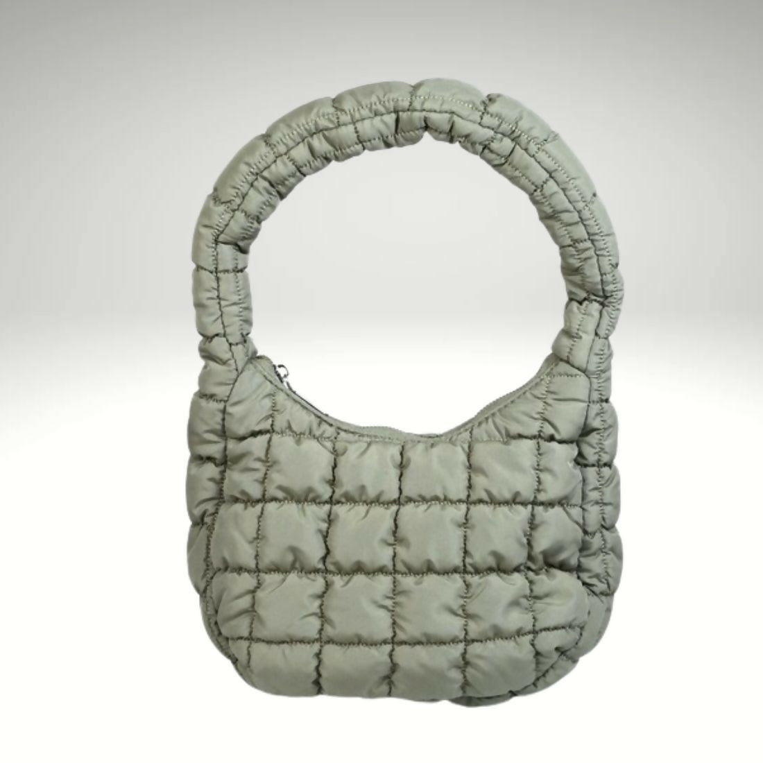 Adorable Mini Quilted bag. Grab this light weight bag on your way out the door. It's large enought to fit your essentials and small enough to be convenient! This is a premium quilted bag with matching coloring on the inside. There is a zipper at the top. Made of nylon for great cleanup.