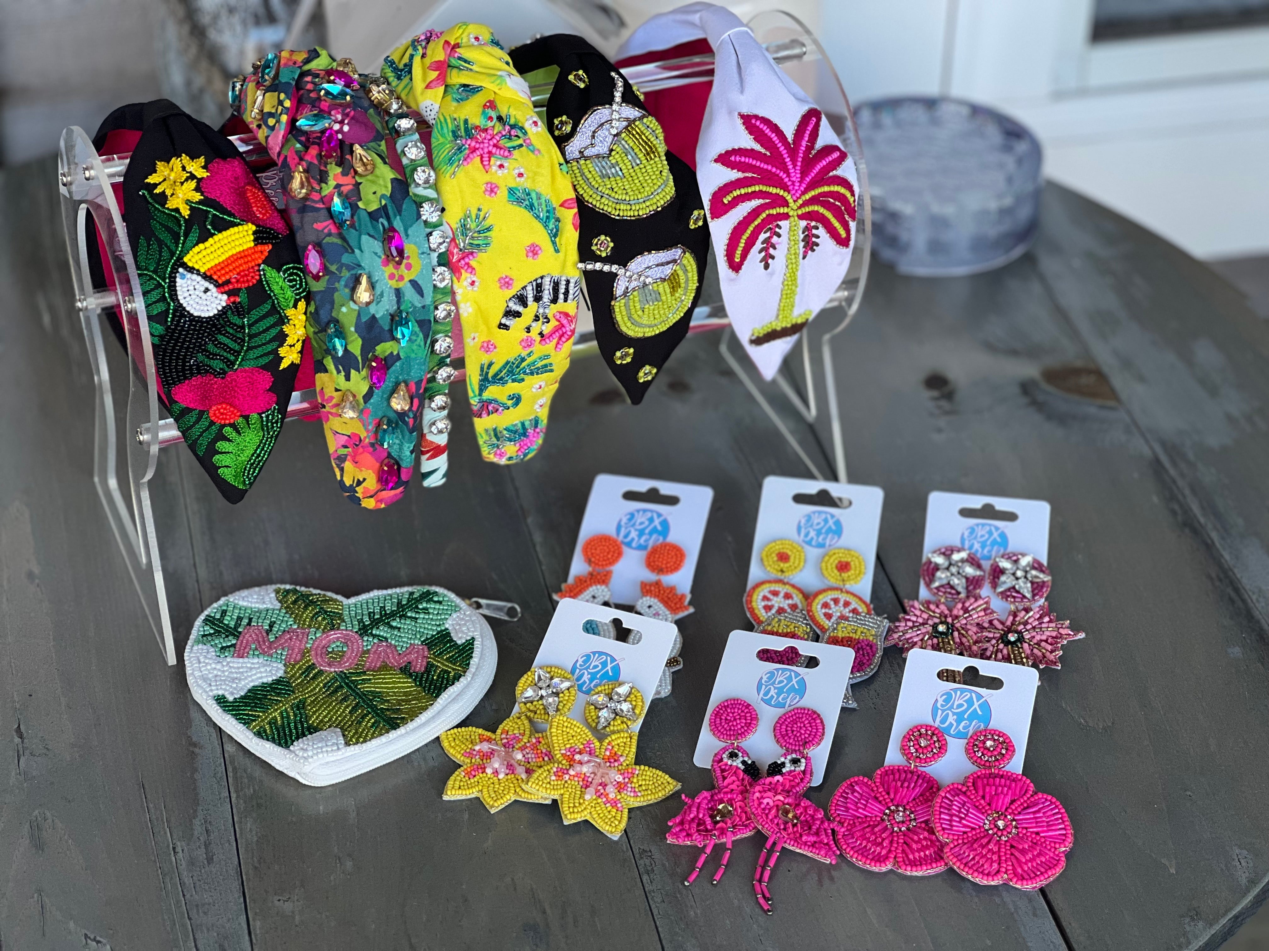 - Design: Seed beaded palm leaves with "Mom" on the front