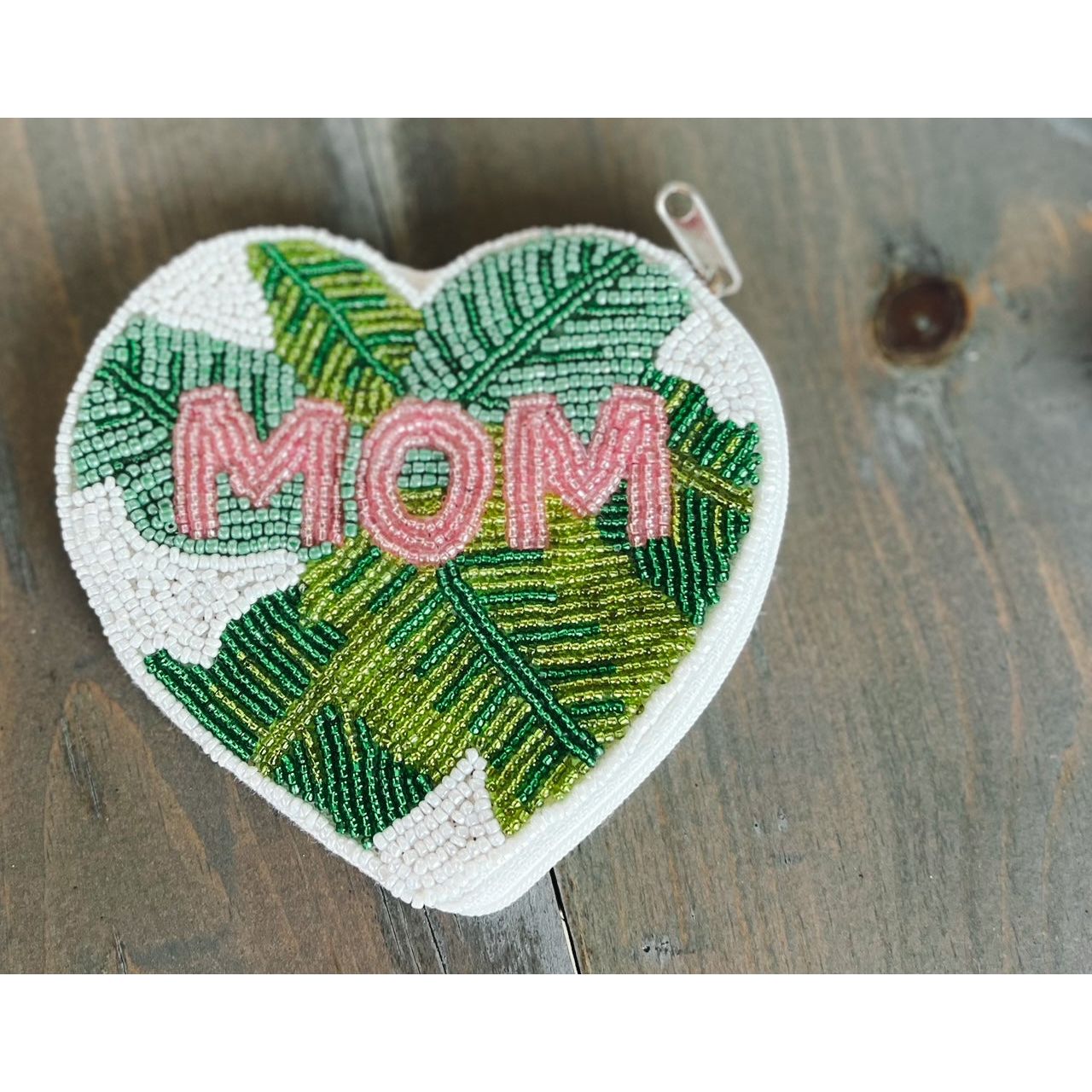 Celebrate your mom with our beautifully handmade seed beaded heart-shaped coin purse, featuring an intricate design of palm leaves and "Mom" artfully crafted on the front. This charming Mom Palm Heart Seed Beaded Coin Pouch Purse is the perfect blend of style and functionality, making it a thoughtful gift for Mother's Day or any special occasion.