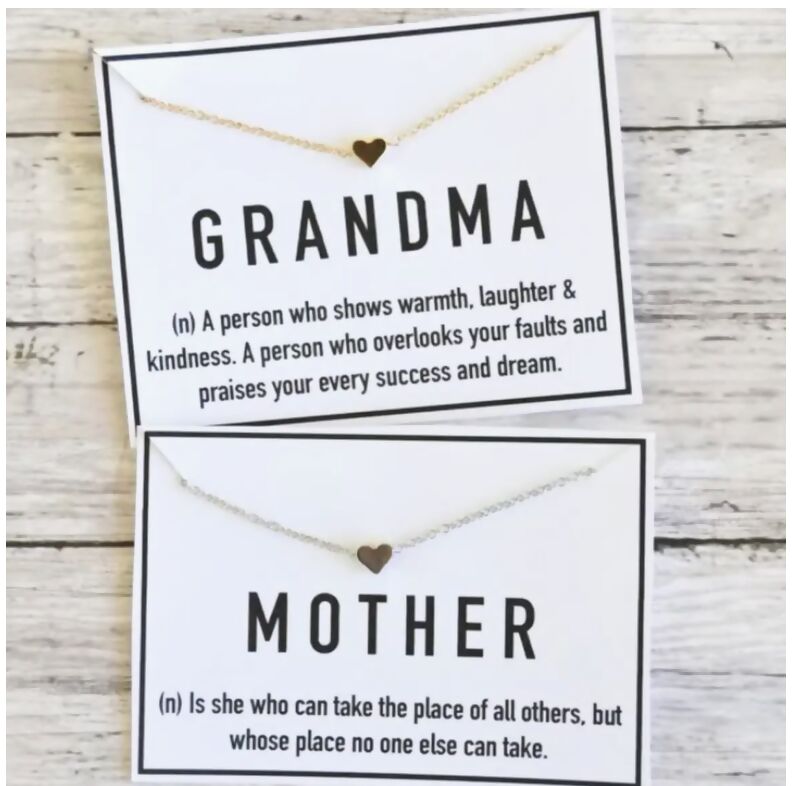 Be prepared with the sweetest, on trend heart necklace on a stationary card for Mother's Day. Choose a Mother or Grandma card and a dainty silver/gold heart necklace. These come ready to gift and will be sweet and meaningful without breaking the bank.