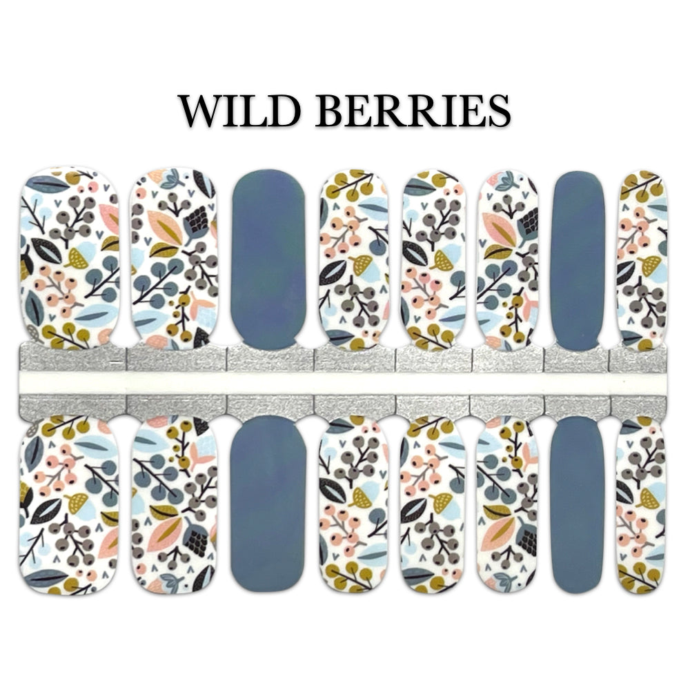 Get ready to rock your fall looks with our nail wrap Wild Berries! This style has slate blue solid nail strips and feature an intricate design of berry stems in beautiful fall shades, adding a touch of wildness to your manicure. Stand out with this perfect blend of boldness and elegance!
