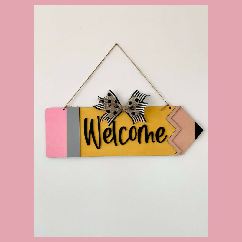 Get ready to add a creative touch to any classroom or study area with our Pencil-Shaped "Welcome" DIY Craft Kit! Perfectly laser-cut into the shape of a pencil and featuring the inviting word "Welcome," this kit offers a fun and artistic project that you can paint and assemble yourself. Ideal for teachers looking to personalize their space or for anyone who enjoys a bit of whimsical decor, this kit contains everything needed (except for paint) to create a charming and welcoming sign.