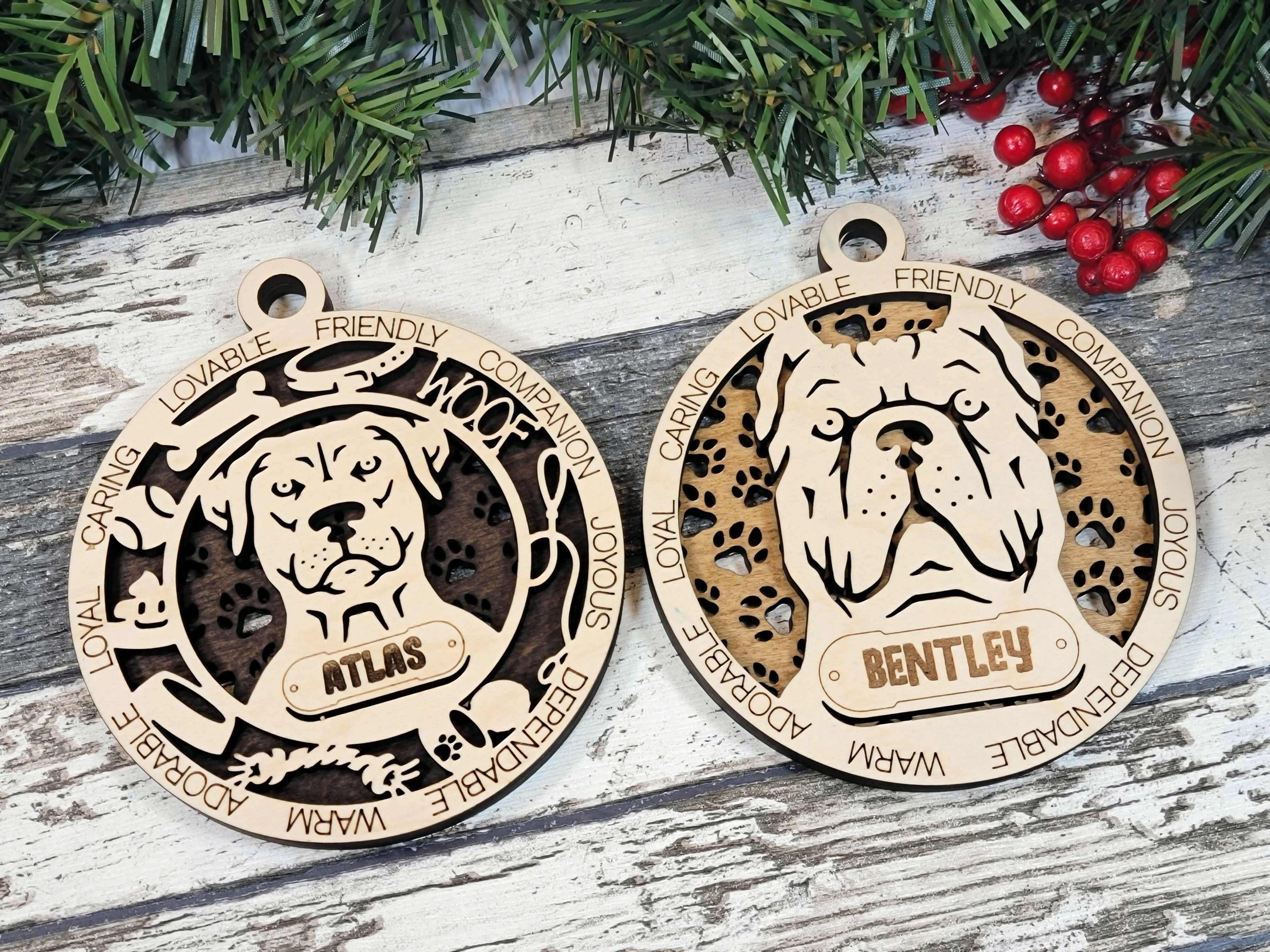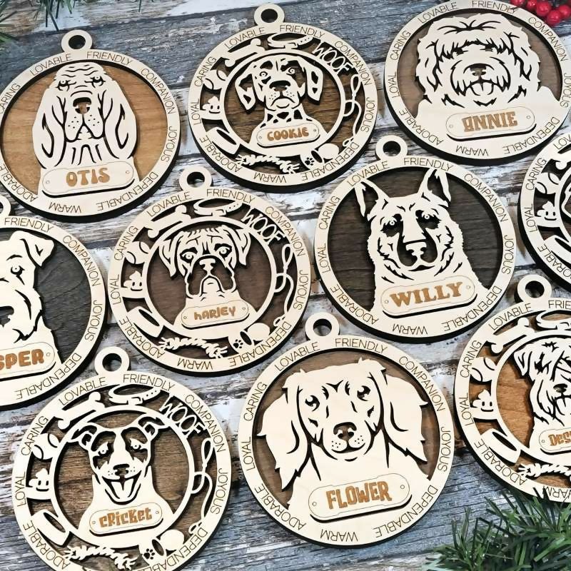 Memorial Option: For those who have lost a cherished canine companion, we offer a memorial ornament. This special version features wings and a halo around your dog's name, serving as a touching tribute to a beloved pet that has crossed the rainbow bridge.