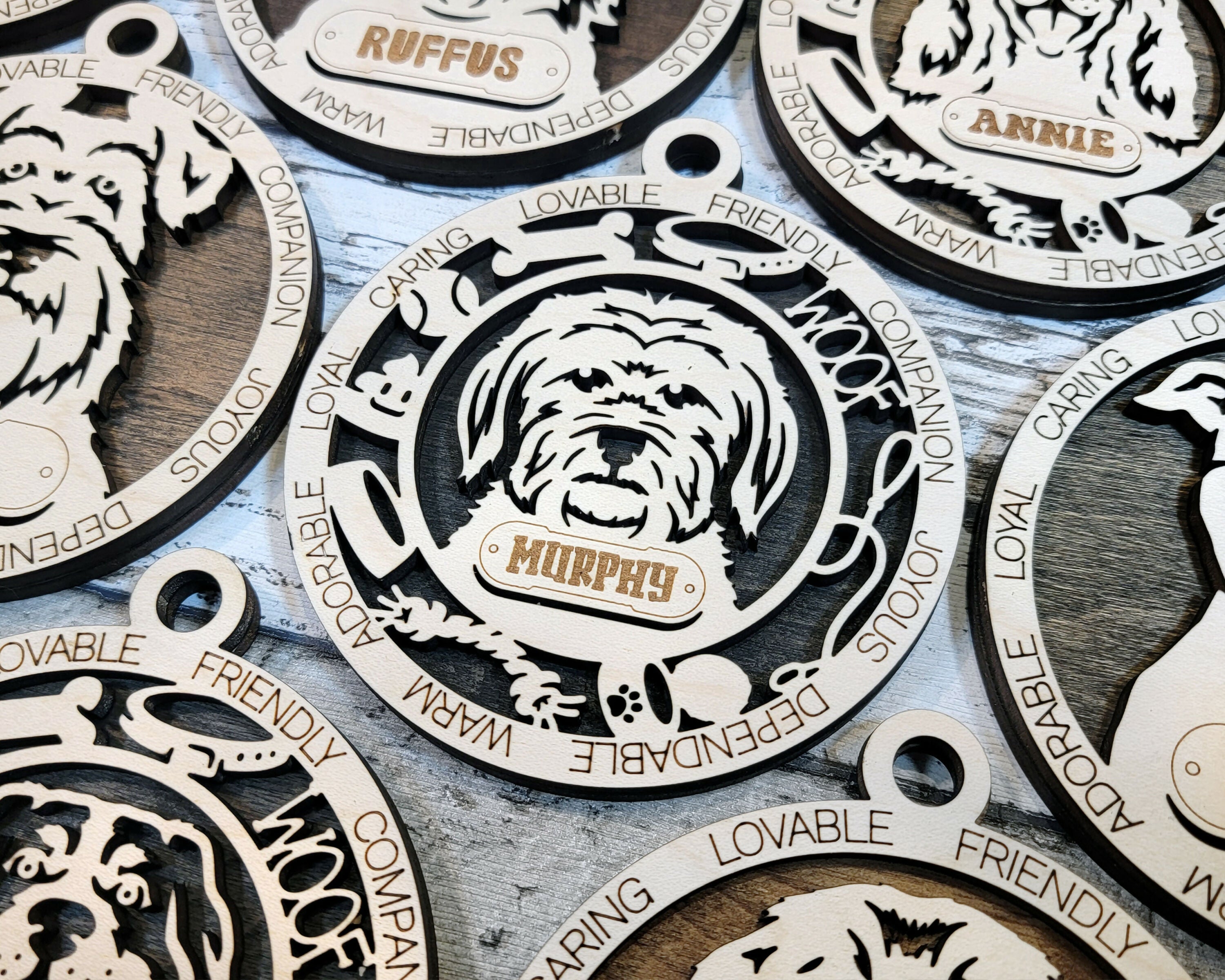 Personalized Adorable Dog Wood Ornament - Volume 1