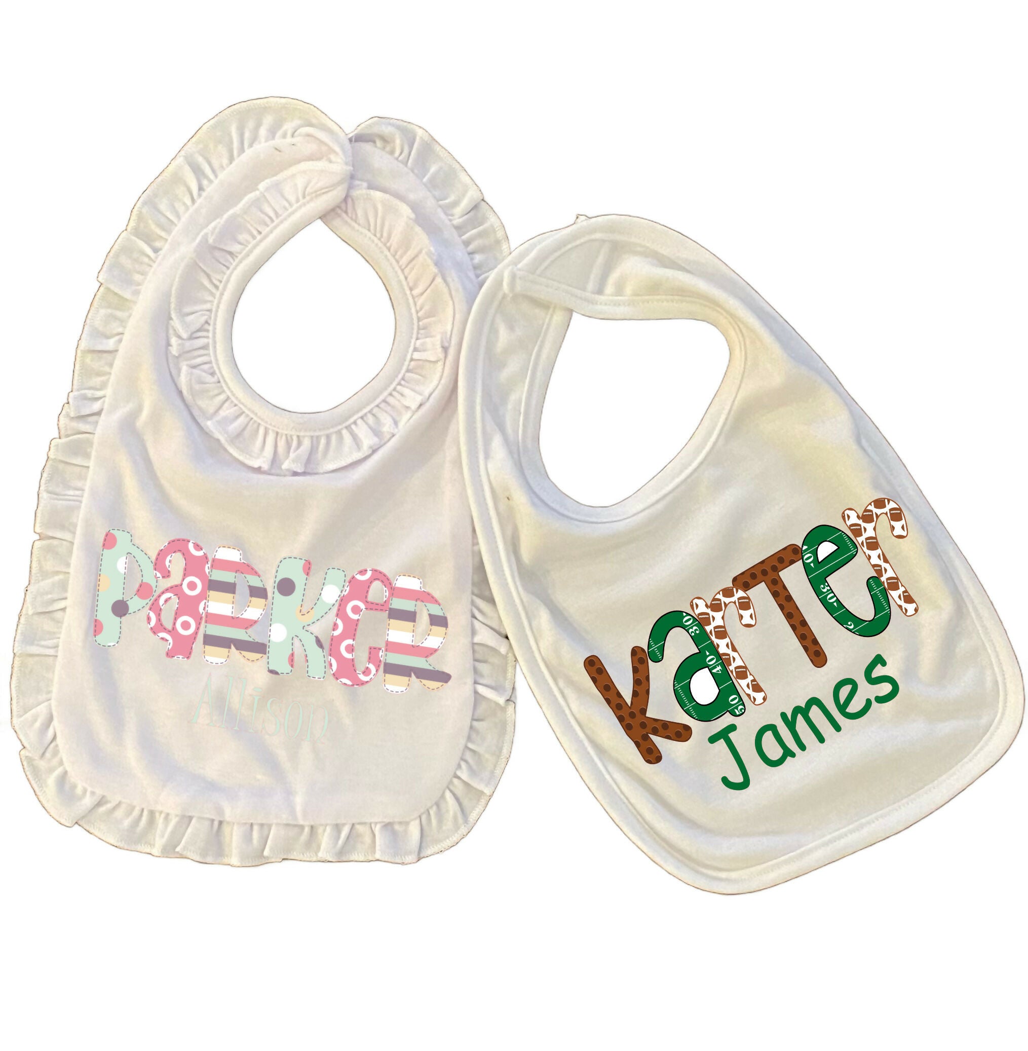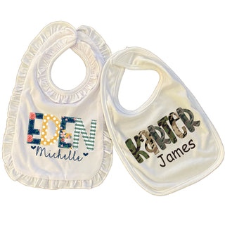 The bibs are just one of many in my baby collection. please see the matching baby gowns in a separate deal.