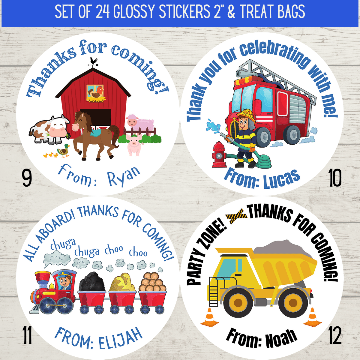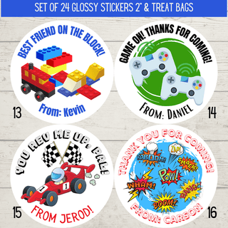 Personalized Boys Birthday Party Stickers & Treat Bags