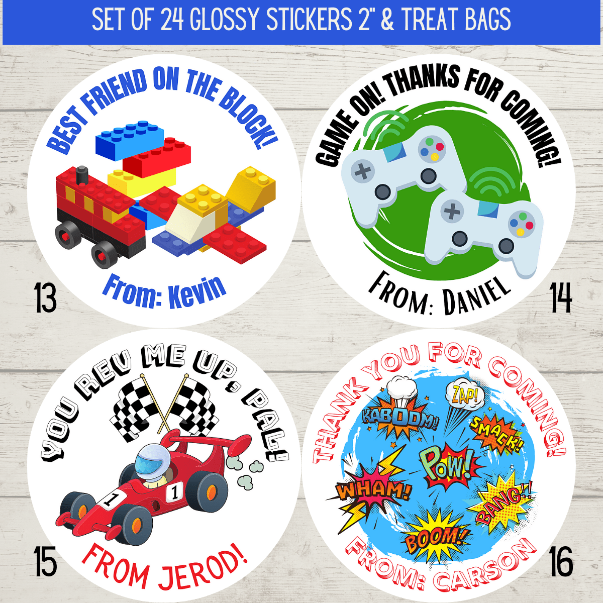 Personalized Boys Birthday Party Stickers & Treat Bags – Roxie's Picks