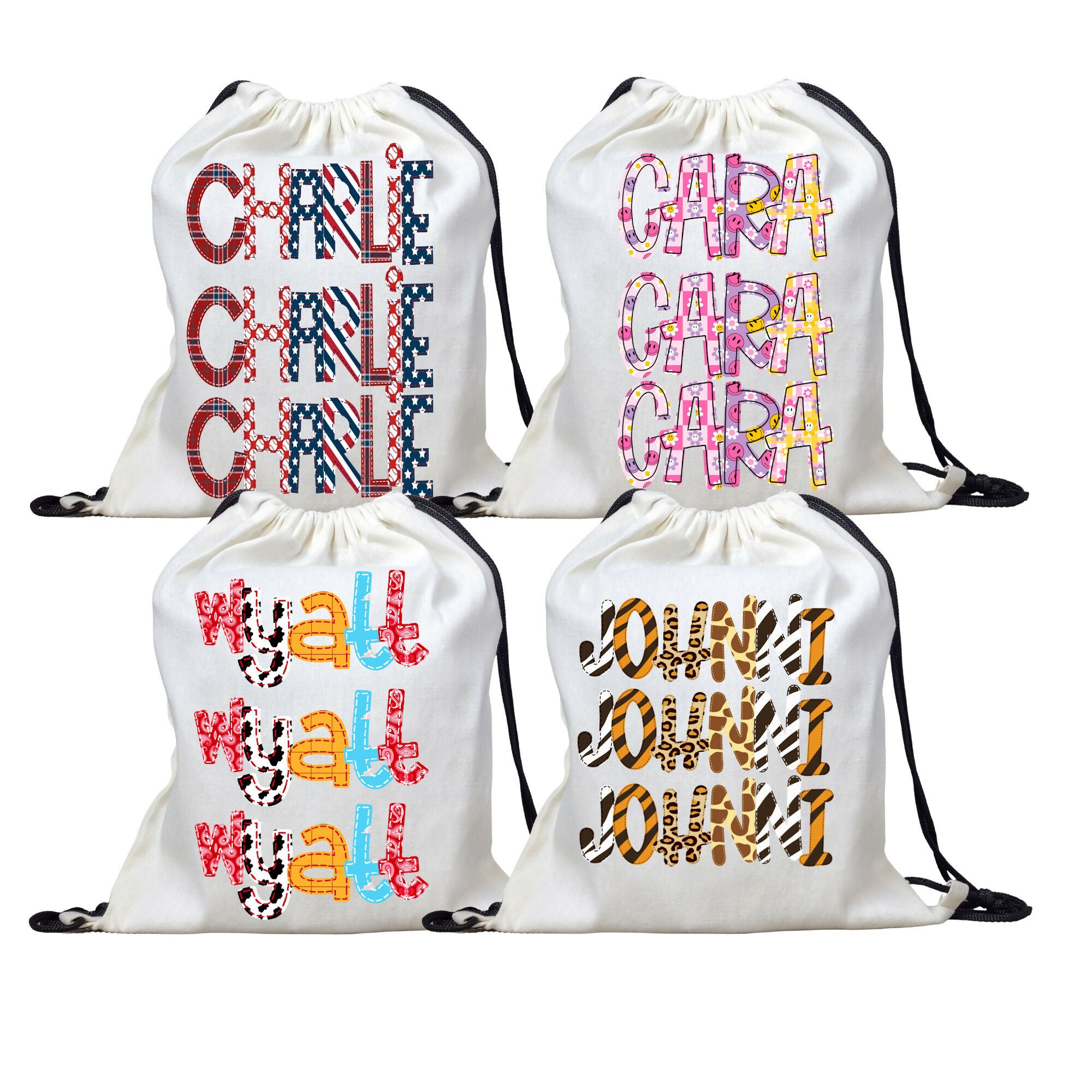 My Alphabet Soup personalized cinch sacks are a necesity for summer! Camp bag, pool bag, overnight bag, you need a bag for everything. These cinch sacks are light weight and big enough for all of your things. Everyone in the family is going to need at least one!!