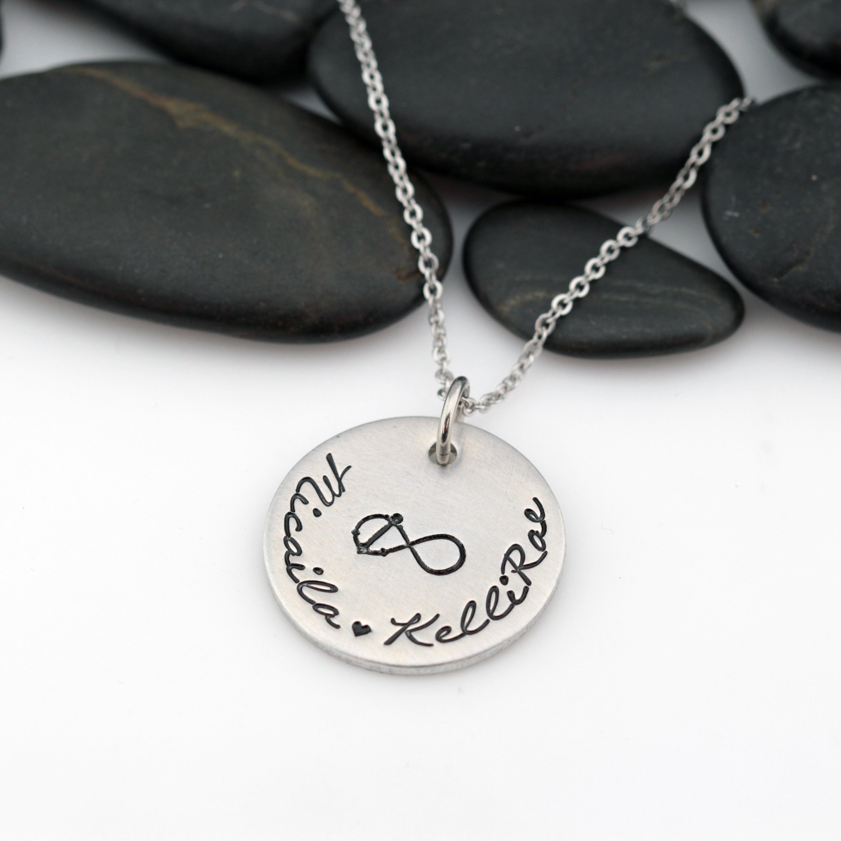 PLEASE NOTE: Our personalized custom charms, bracelets and necklaces are hand stamped using special tools. Thus, each piece will be unique and you should expect variations from the photos. No two pieces will be alike. Text and designs may not be absolutely perfect and straight as each letter is individually stamped. This gives you the unique detail to your charm and should not be considered a defect in craftsmanship.