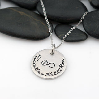 This gorgeous necklace OR keychain comes with a hand-stamped disc that is hypoallergenic and will not tarnish. It is attached to a dainty 1.5mm stainless steel cable chain OR a sturdy 25mm stainless steel keyring.