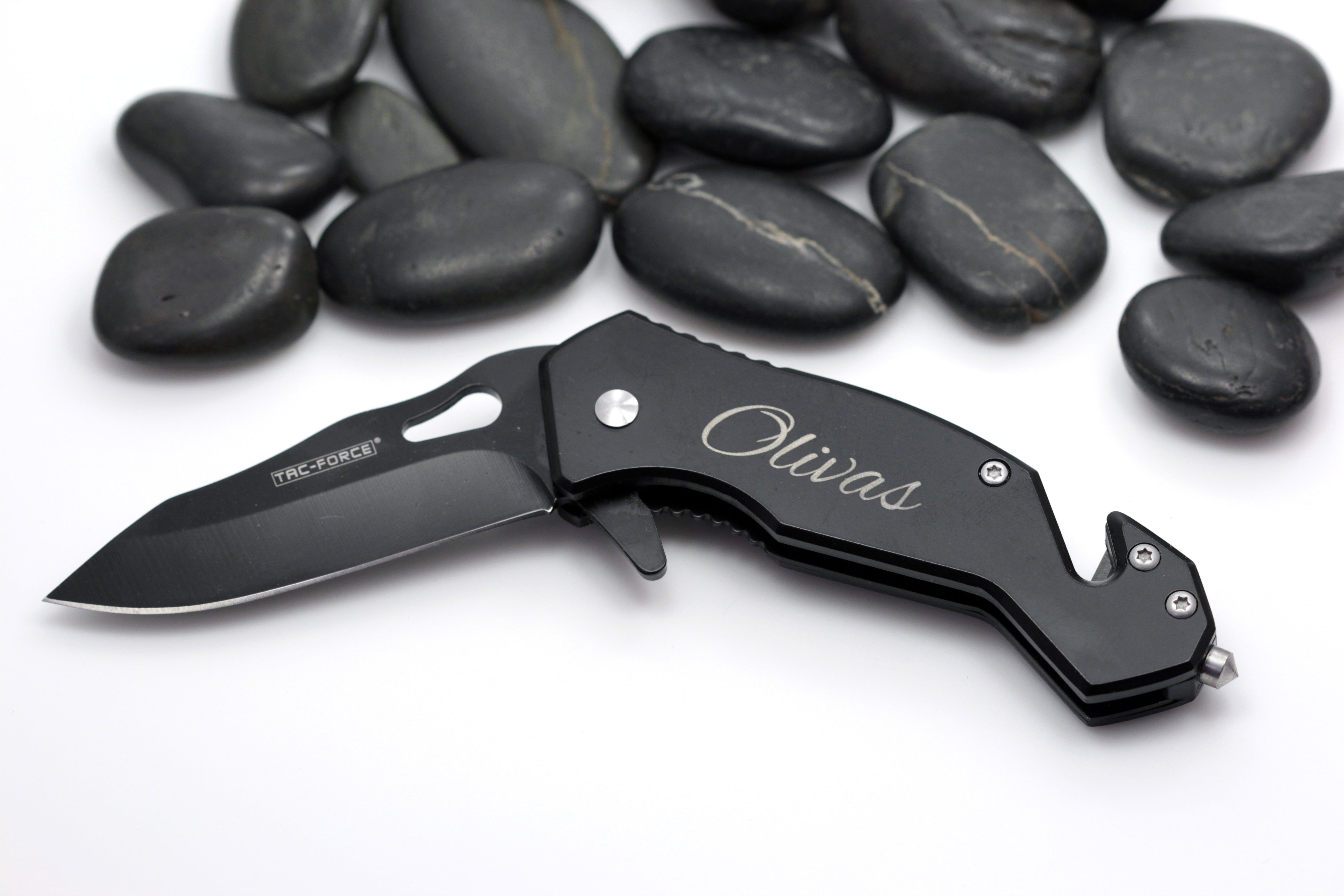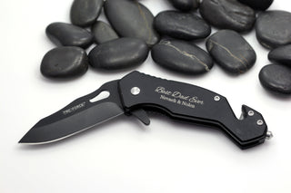 These are perfect for a Christmas, Anniversary, Bridal Party, or Wedding gift! You will receive ONE Pocket Kn!f£ that is personalized with a name or short phrase. Please note the font size will be smaller for more characters. It is approximately 3.75″ in size (folded) and 6.5″ in size when it is fully open.