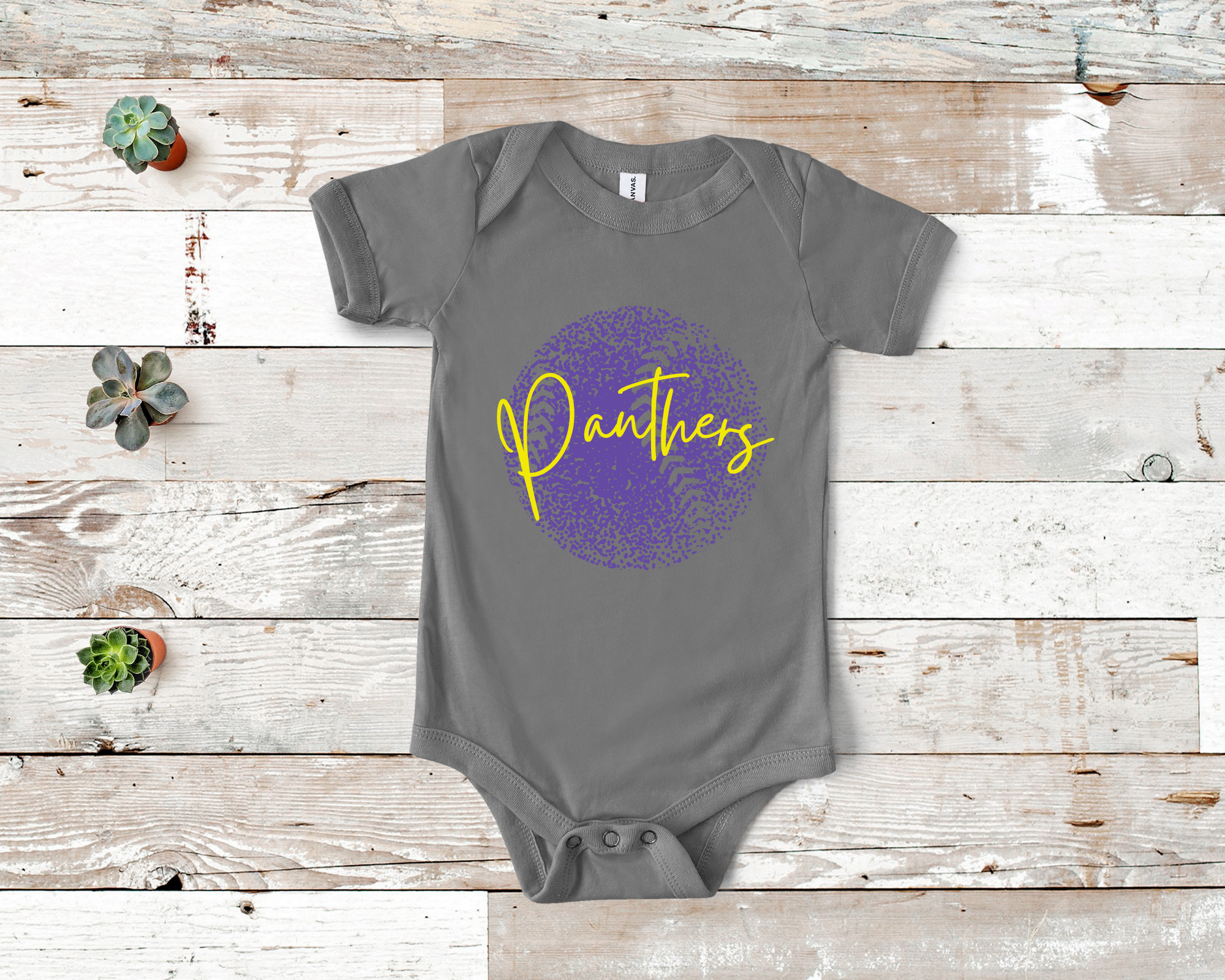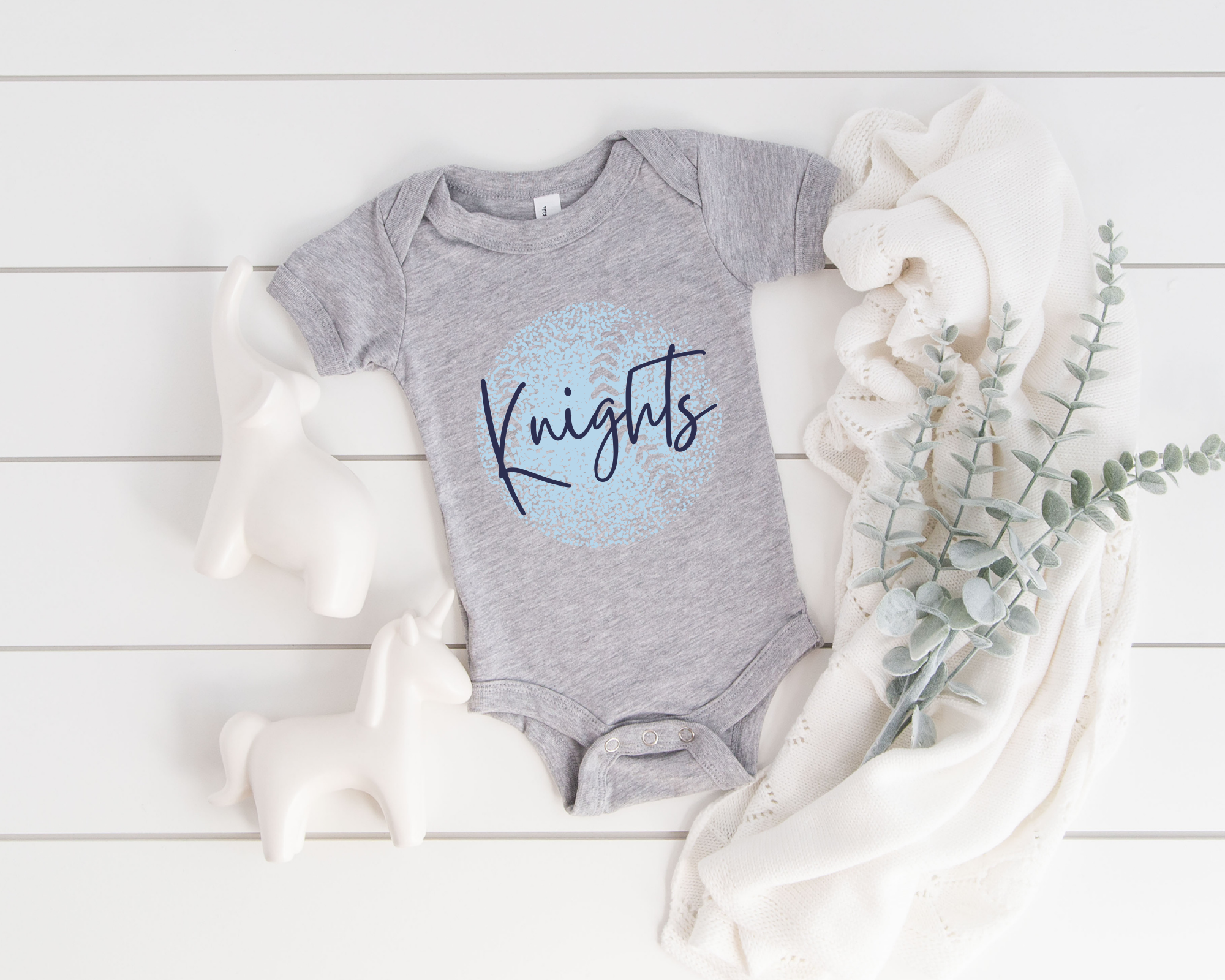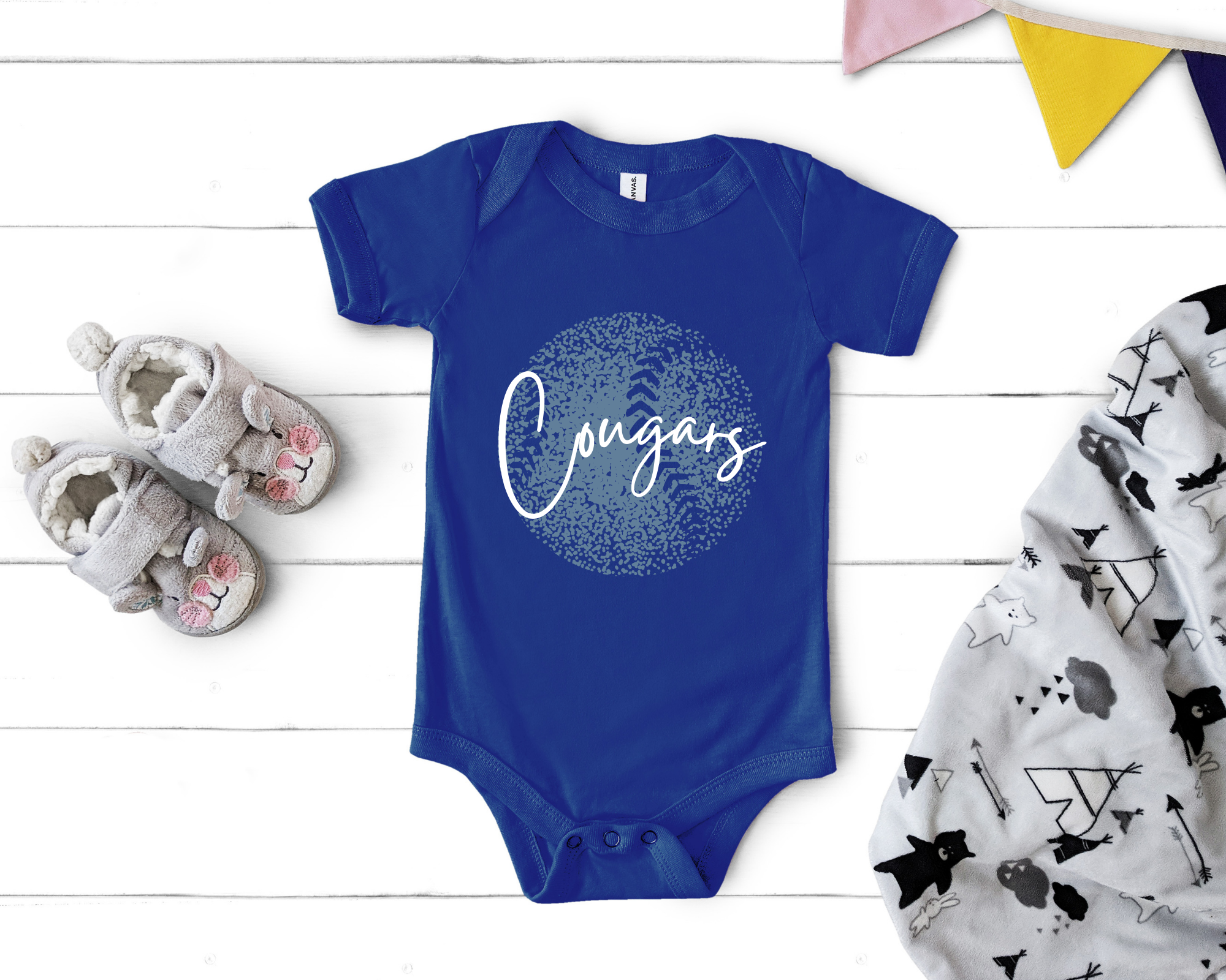 Personalize this bodysuit with your softball team name, team name color, and faded softball color.