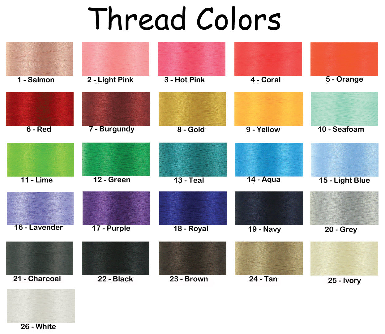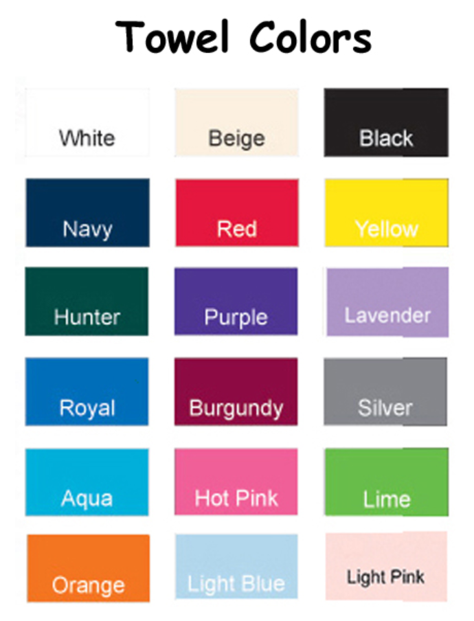 Available in 18 towel colors. 20+ writing styles. 20+ thread colors.