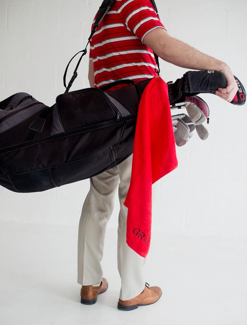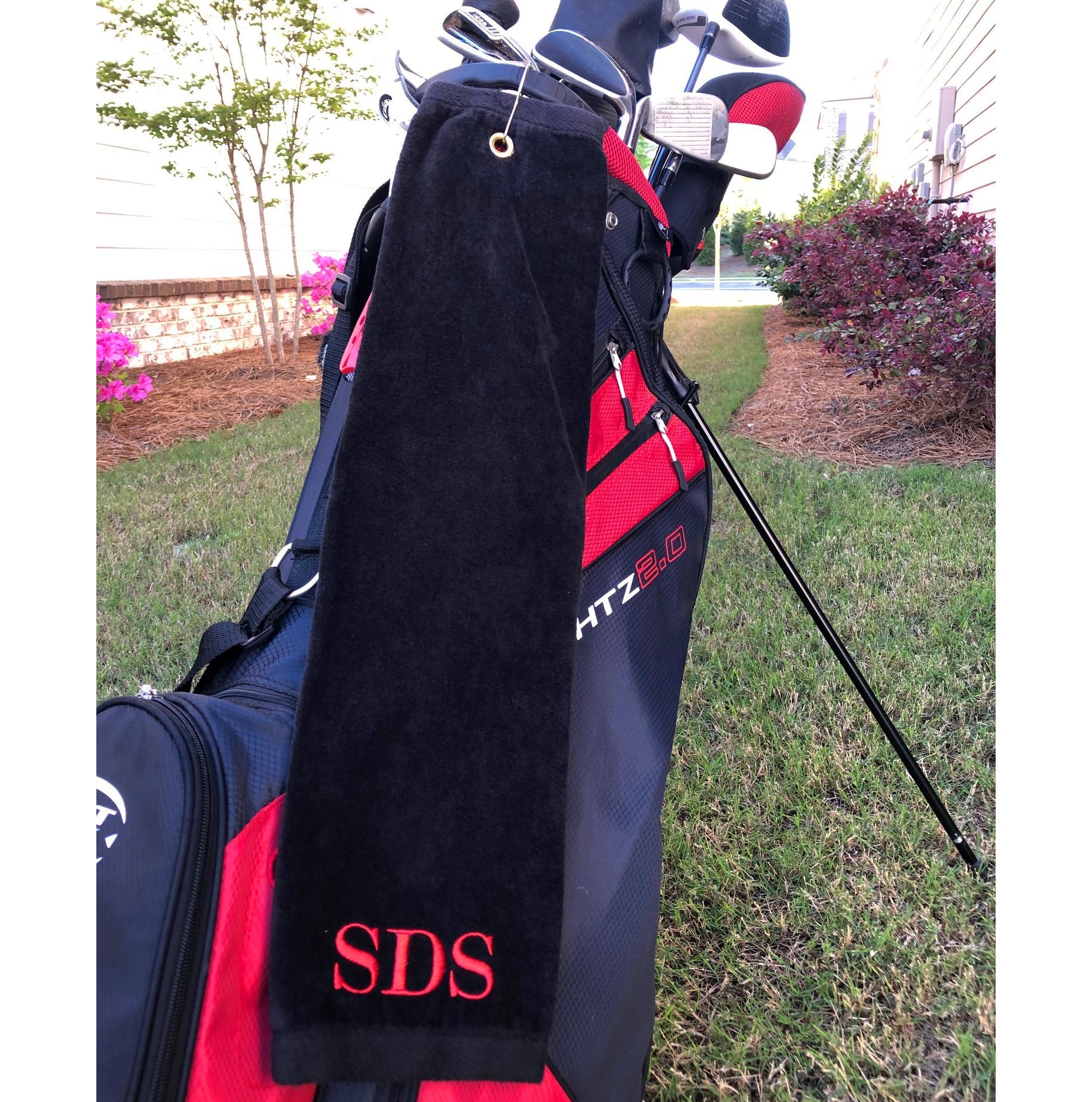 Perfect gift for golf lovers! Great for lady golfers too! This monogrammed towel looks great on your golf bag and easily accessible for wiping hands and clubs. Personalize with a name, initials or even your favorite team!