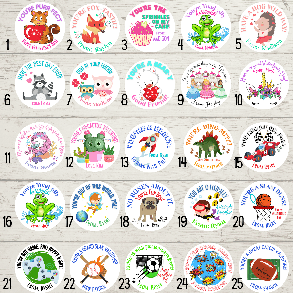 Mama’s don’t be caught without a plan the night before Valentine’s Day losing sleep writing out endless cards for your kiddos. We’ve done the hard work for you! Just fill, peel, and stick! Save time and precious sleep! We have 25 designs and 4 sets to choose from. Worry less, personalize more, and make your life much easier!