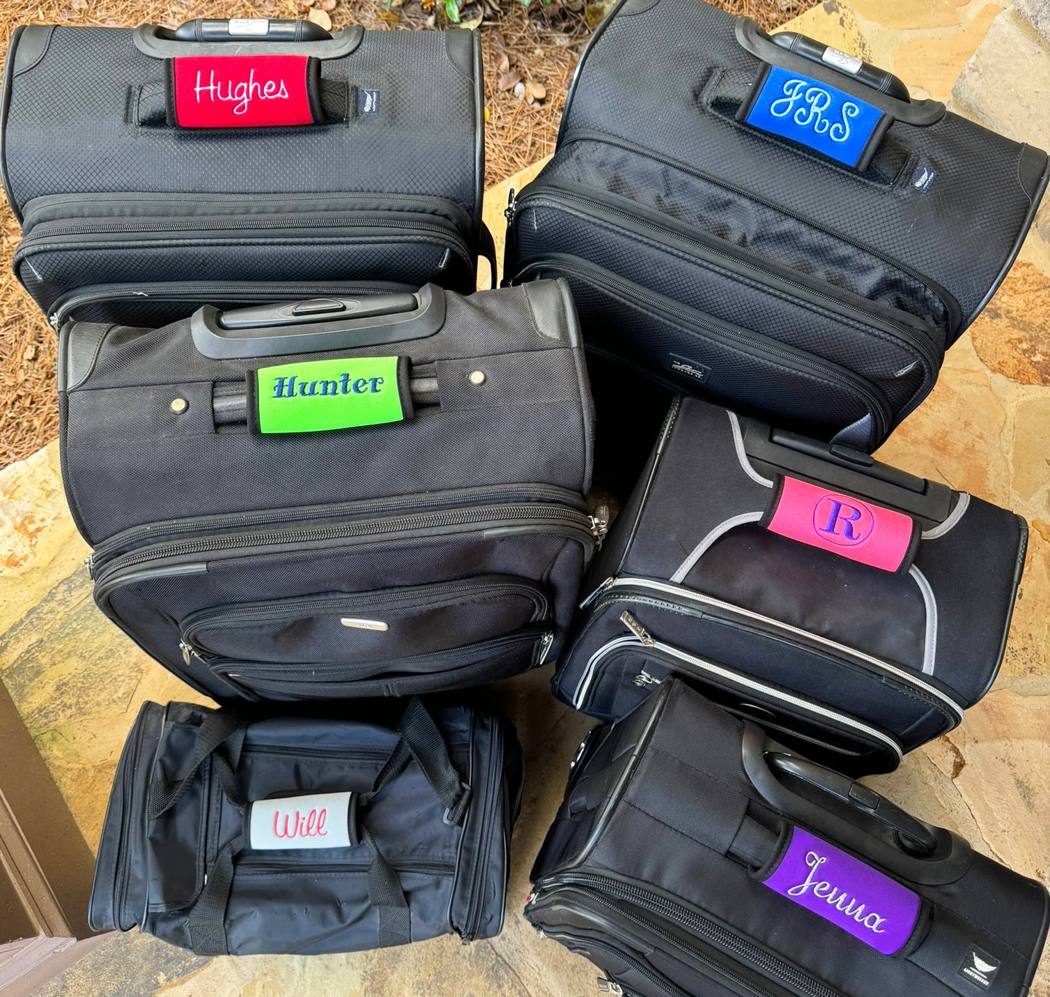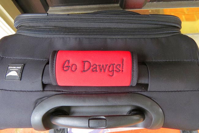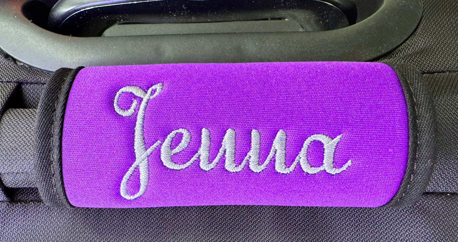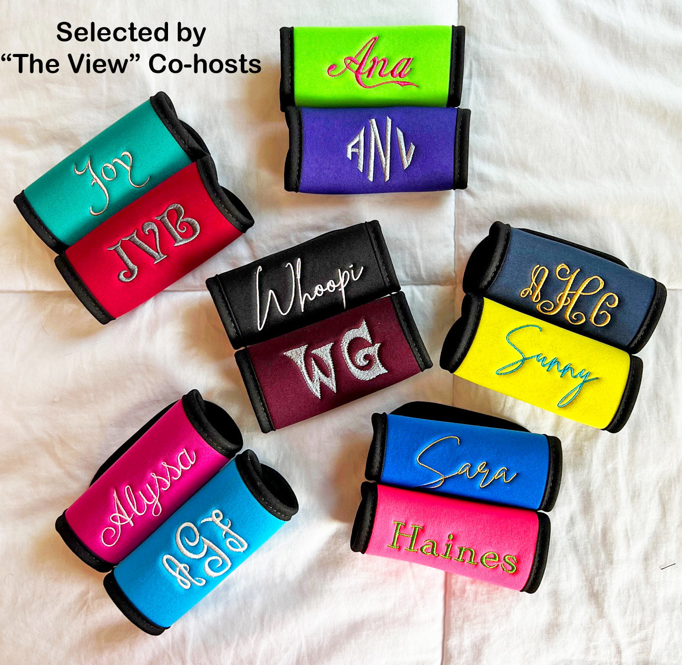 Great for travel! These colorful handles stand out on the baggage carousel or in the overhead compartment. Wrap and close with secure velcro. Enjoy the comfort of padded neoprene grips. Measures 5 inches wide by 7 inches long open.
