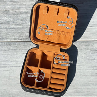 This gorgeous jewelry box is the perfect gift for a loved one, friend, or yourself! It is great for traveling and can be used to safely store your favorite jewelry (rings, earrings, bracelets, or necklaces).