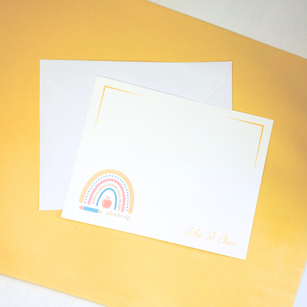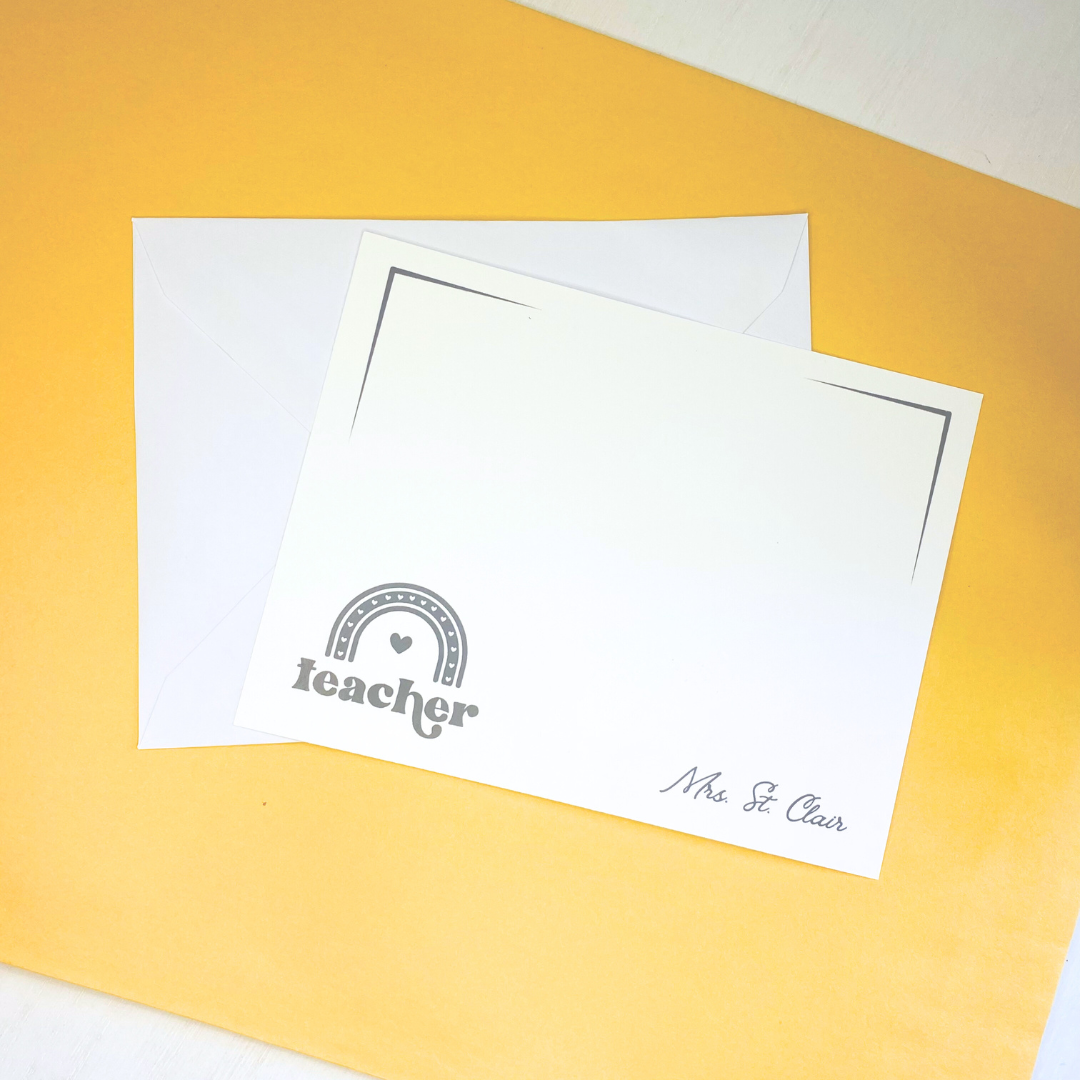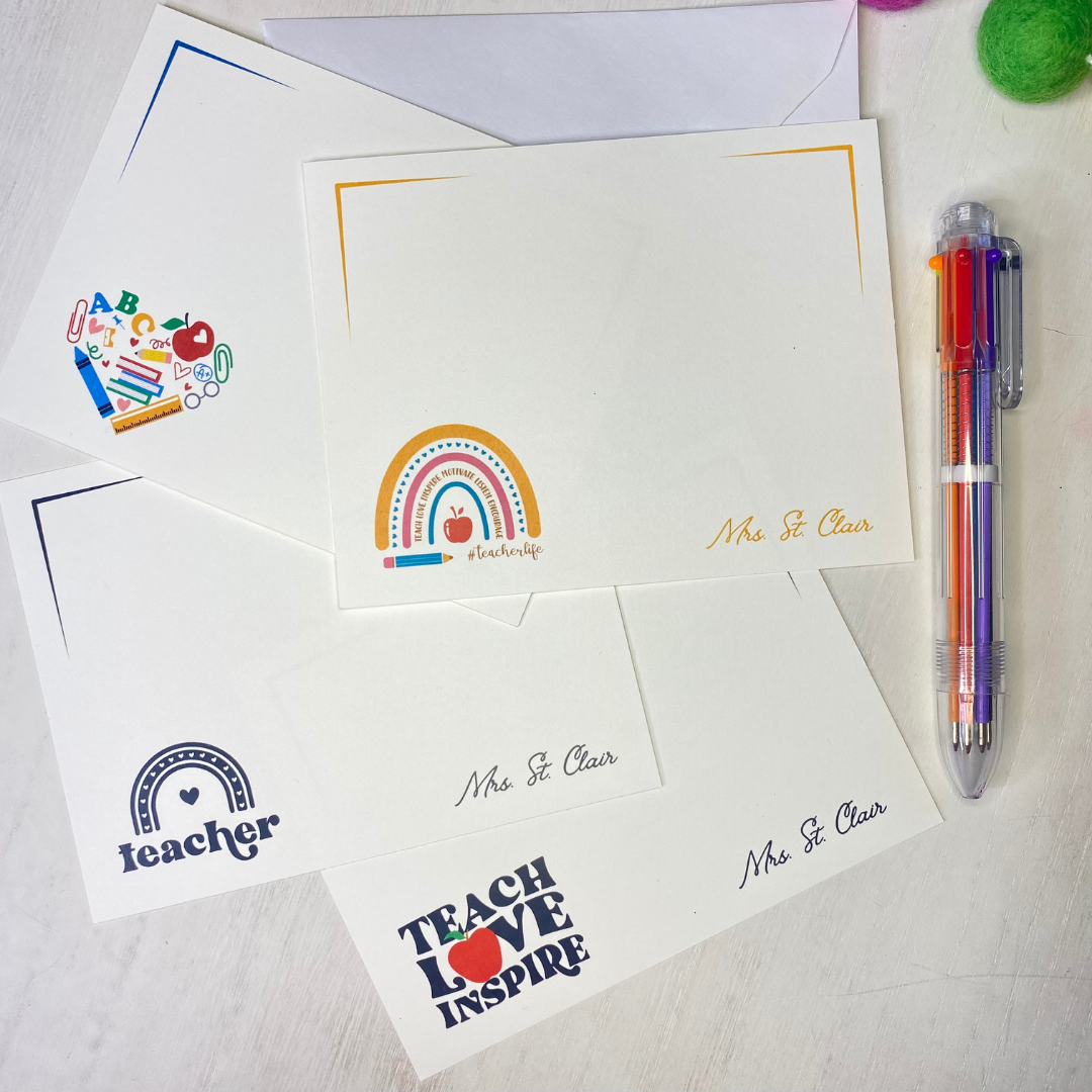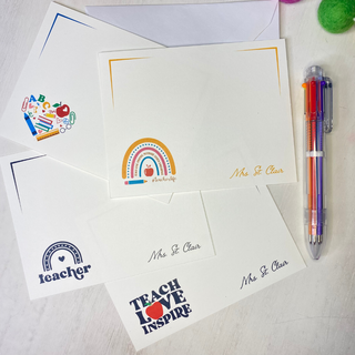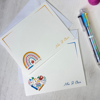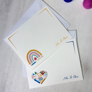 Say thank you to your child's favorite teacher with this personalized set of 12 delightful Teacher Appreciation Gift Notecards. Each card is printed on quality 4.25" x 5.25" premium card stock.