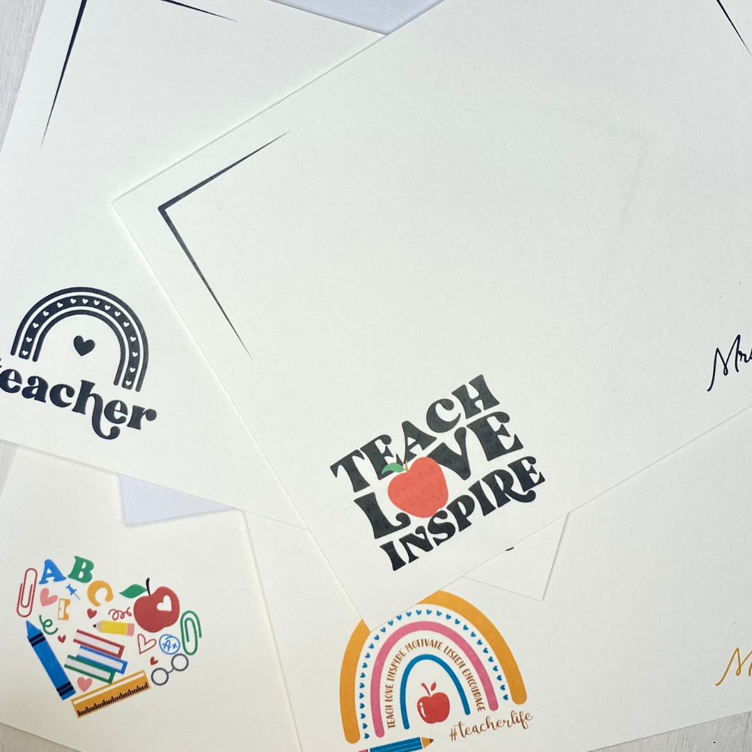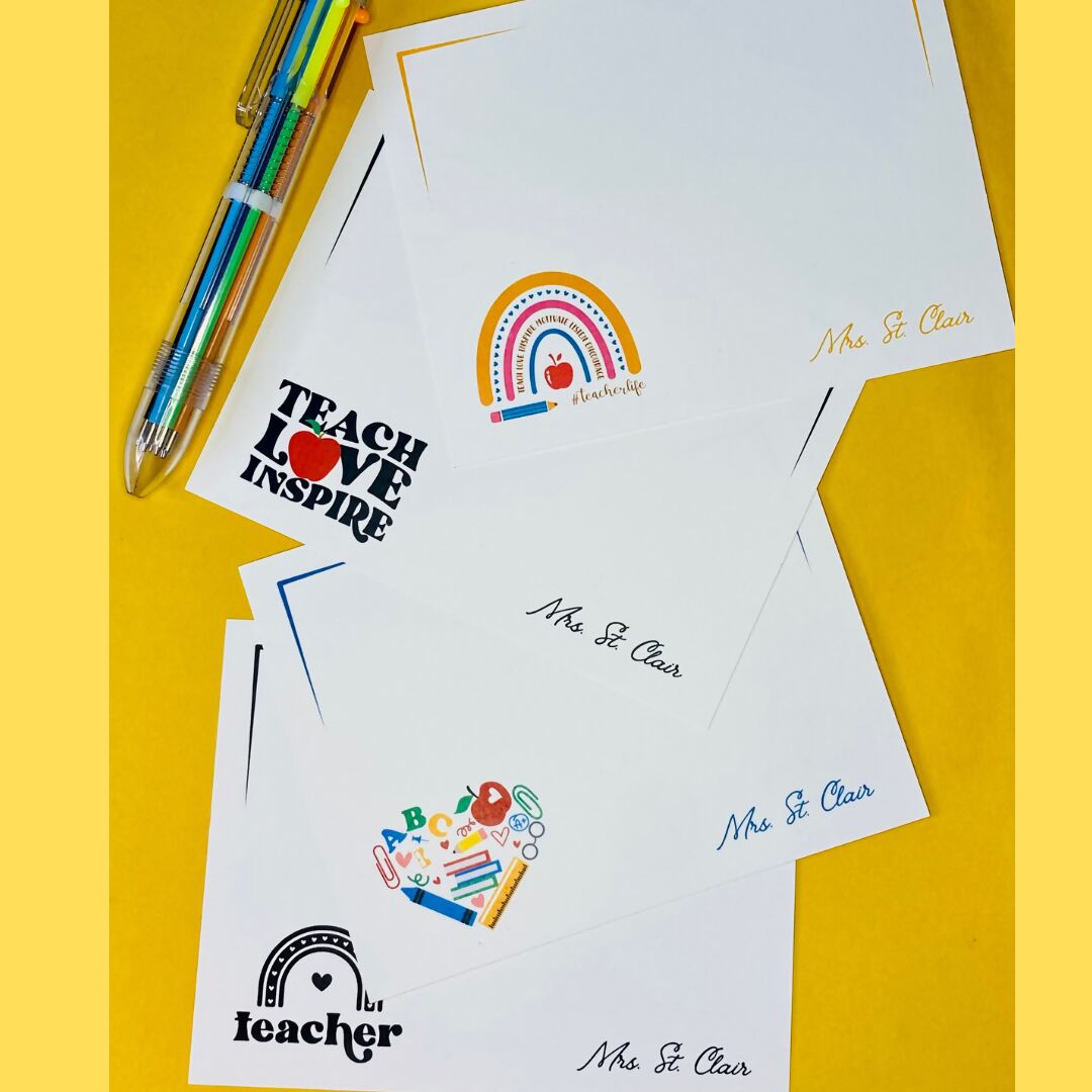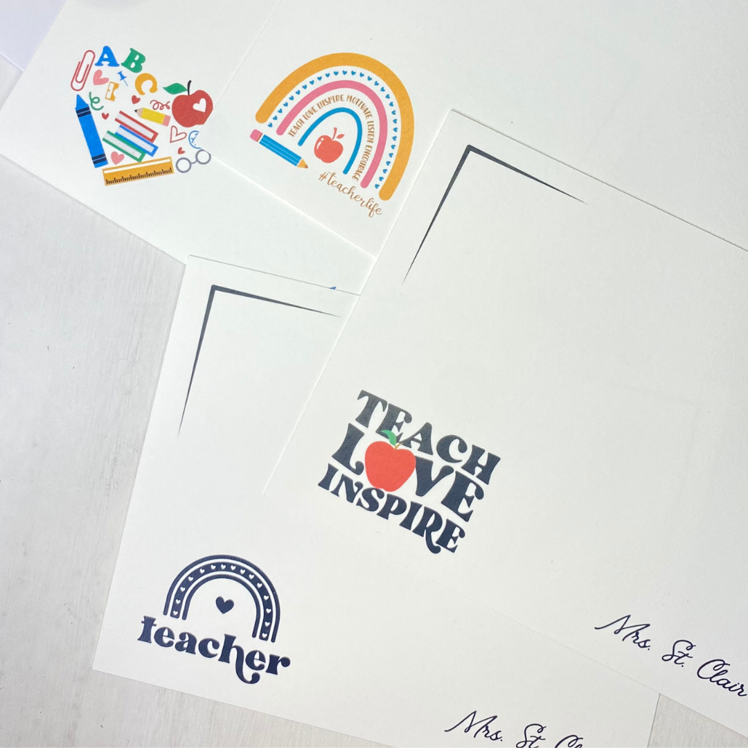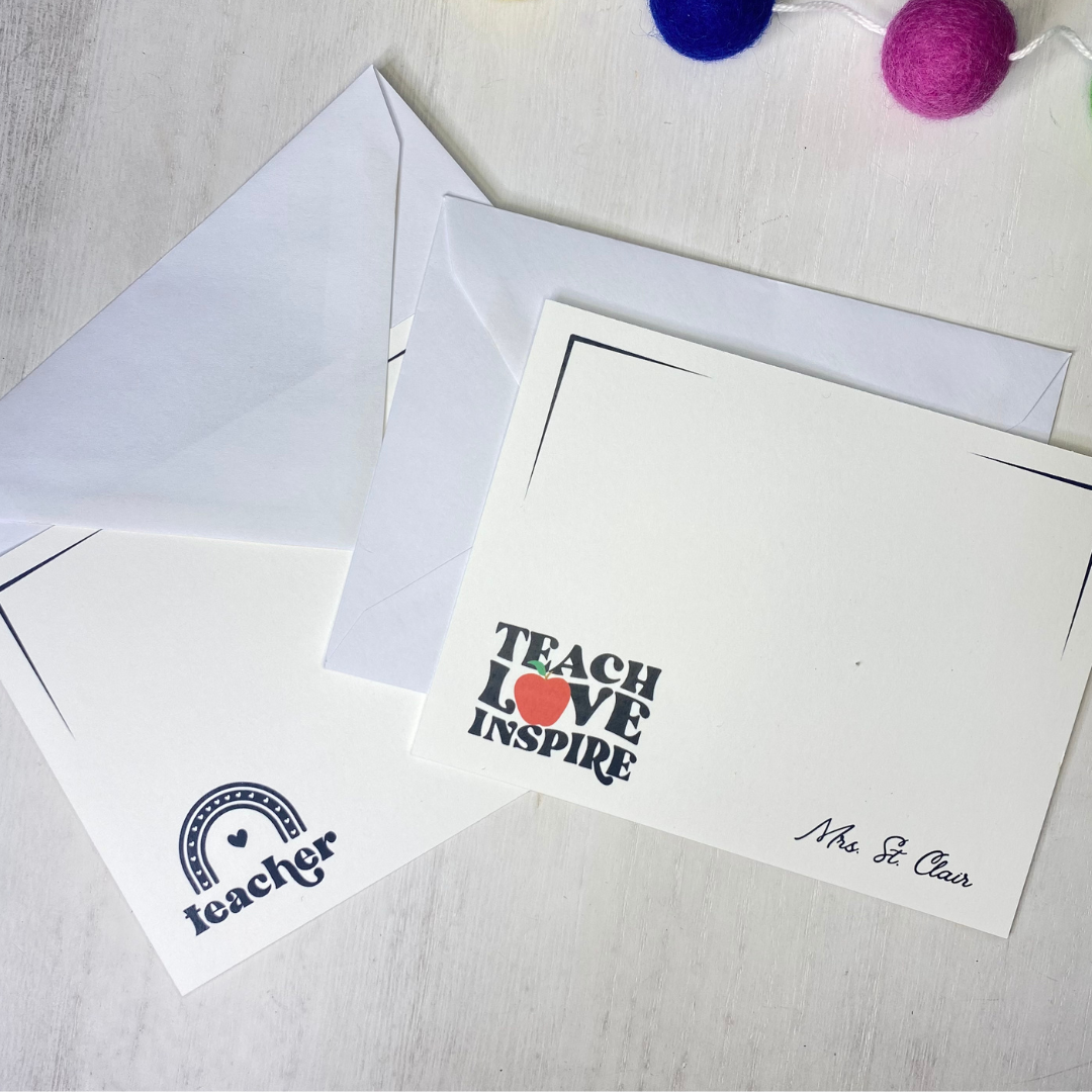 Say thank you to your child's favorite teacher with this personalized set of 12 delightful Teacher Appreciation Gift Notecards. Each card is printed on quality 4.25" x 5.25" premium card stock.
