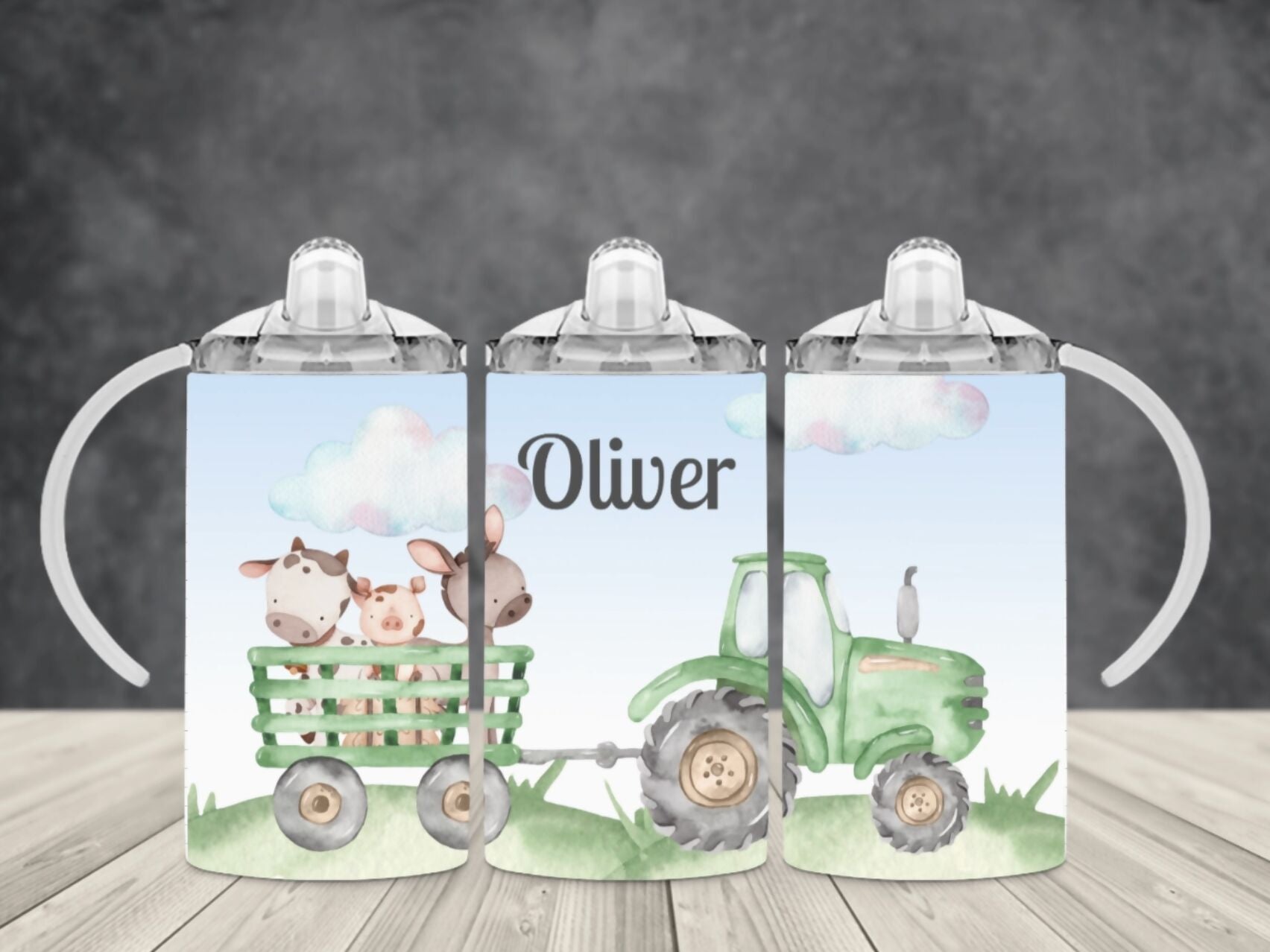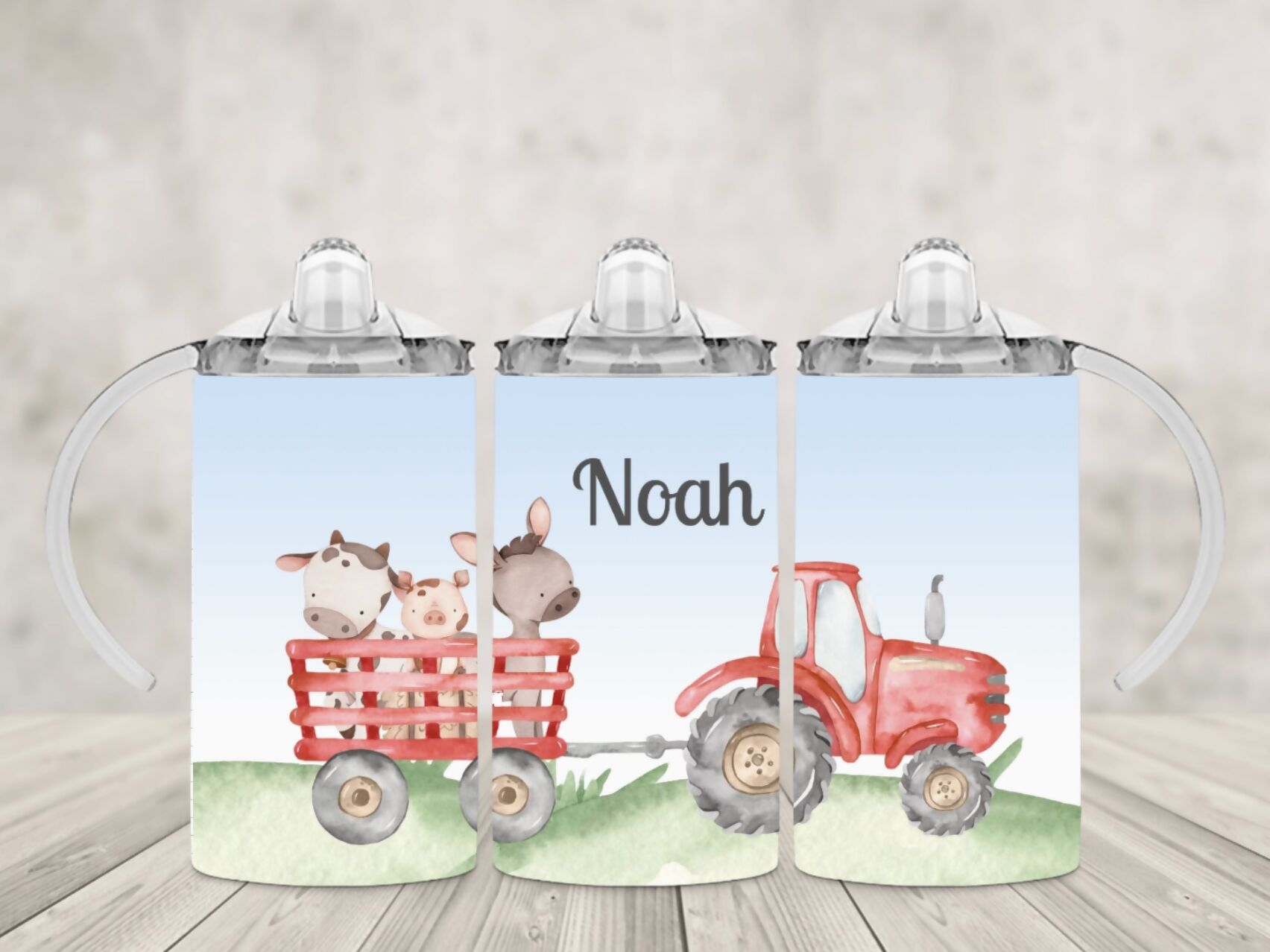 Red or Green Farming Tractor 12 oz Sippy Cup with 2 lids, Personalised – Roxie's Picks