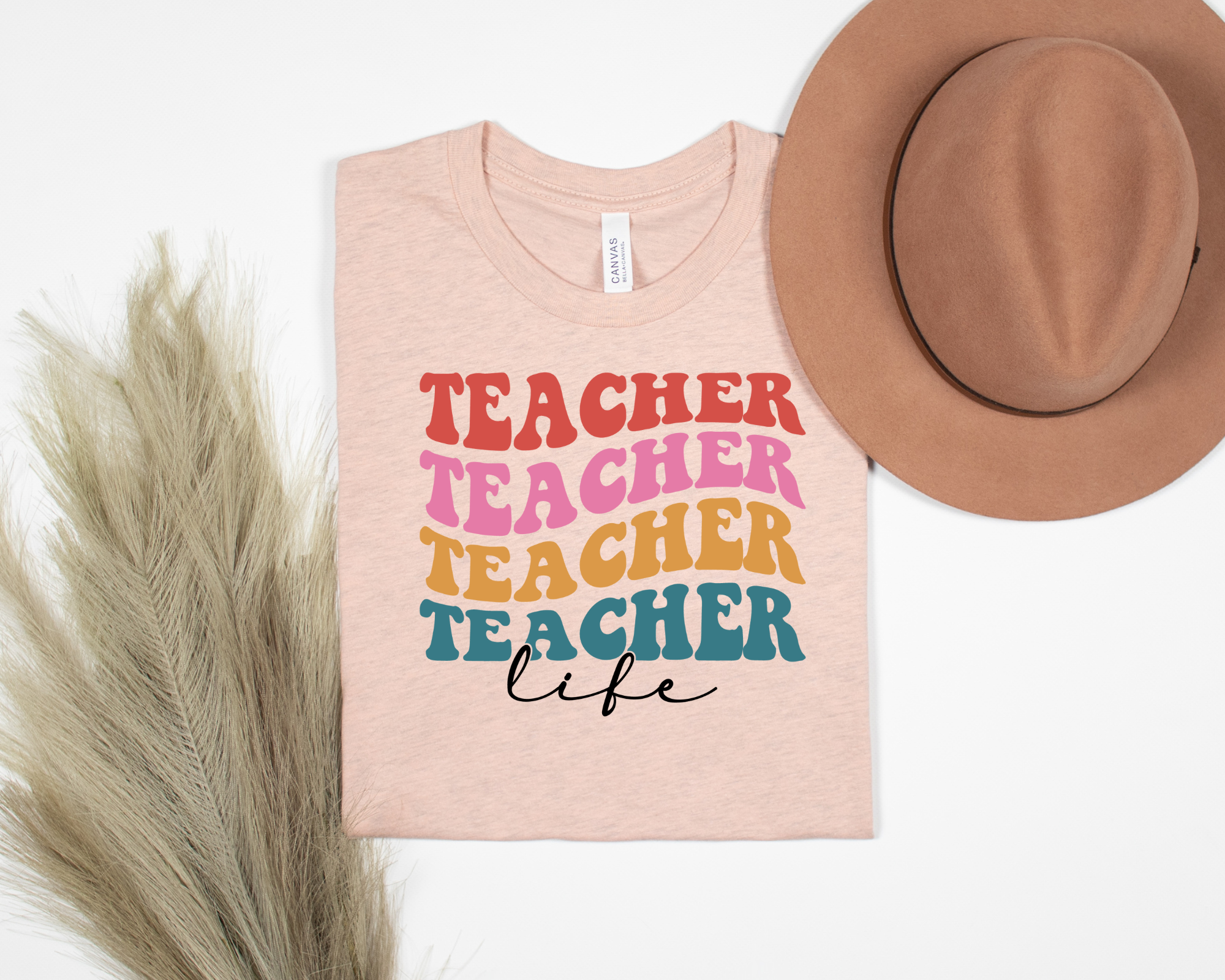 These retro teacher tees are the perfect gift for the teachers in your life! Choose a design and choose your tee color. Please be mindful of the design color while choosing your tee color.
