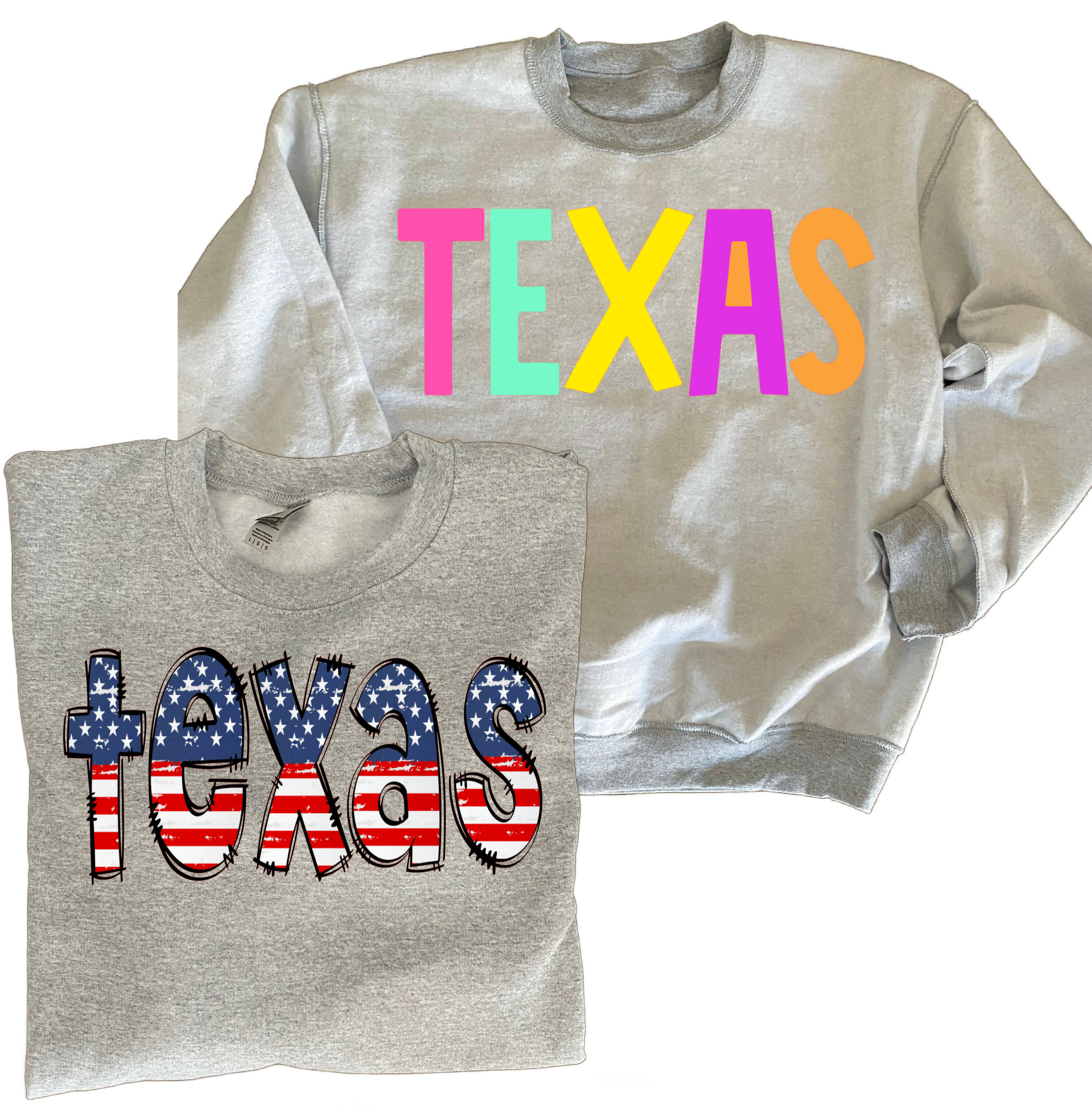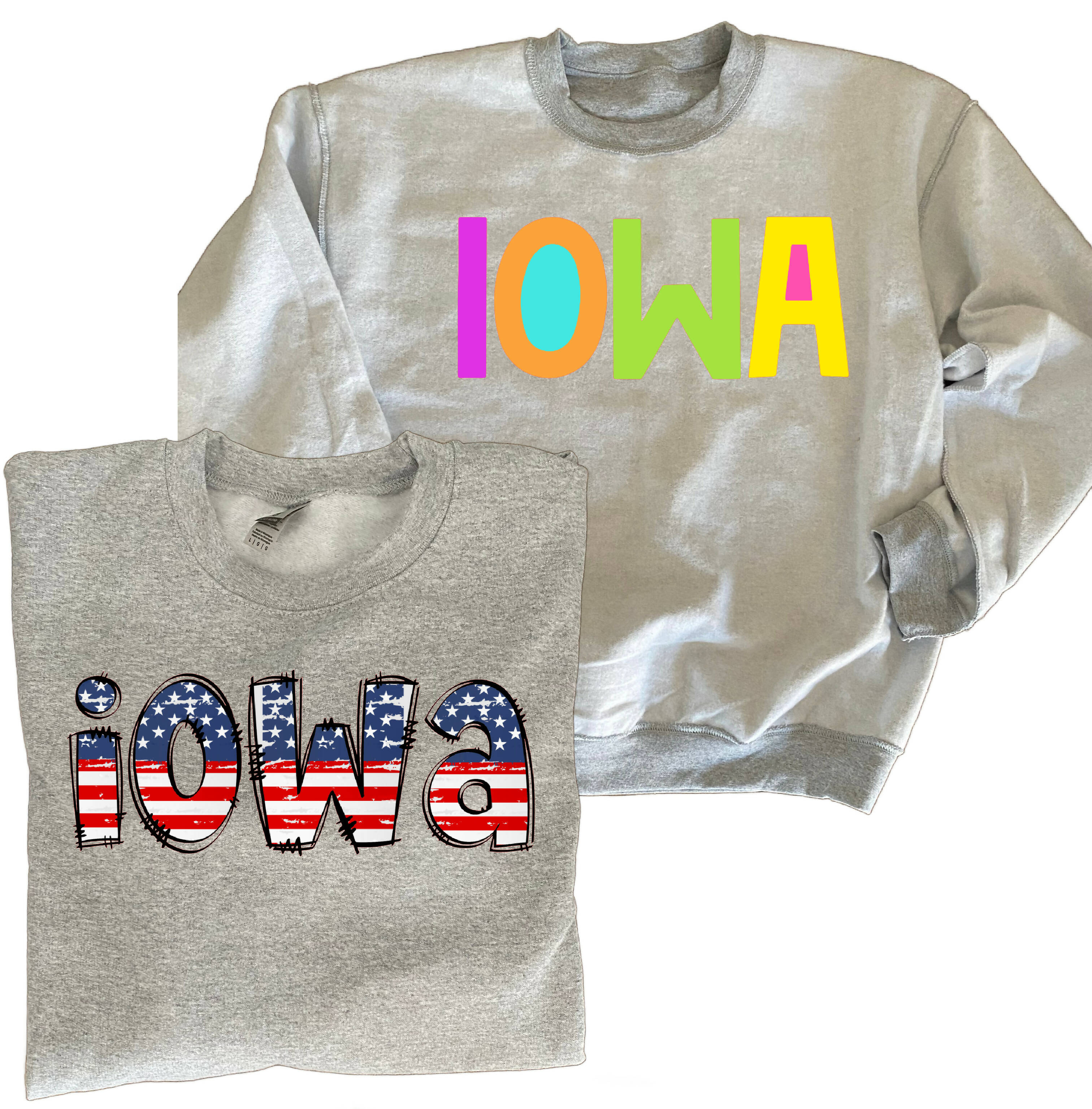 Celebrate your state pride with my reversible state sweatshirt!! On the 'right" side of the gray sweatshirt your state will be in the patriotic flag alpha. When you turn the sweatshirt inside out, surprise, the state is designed in my bright colored alpha.