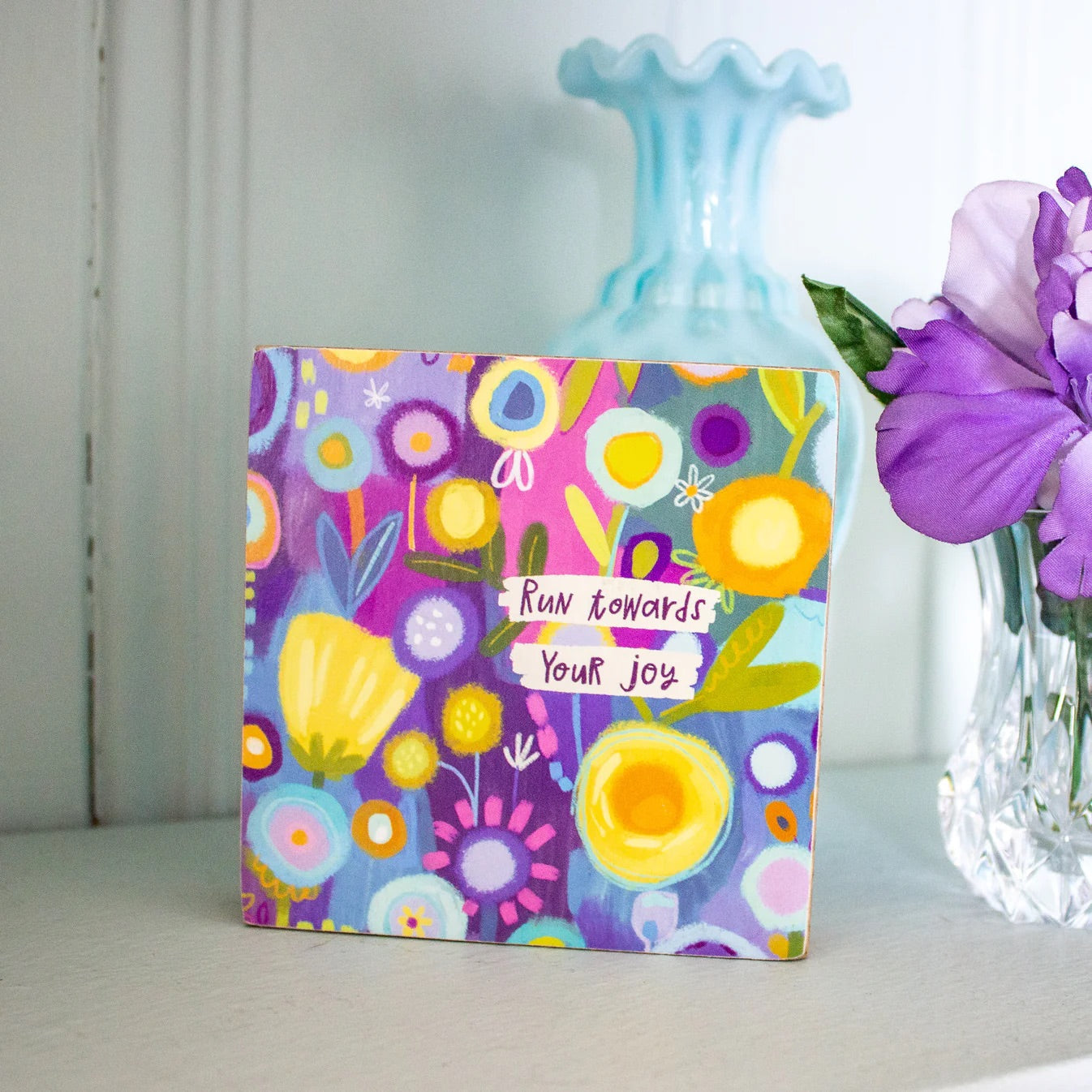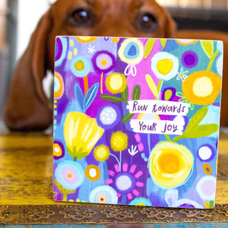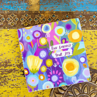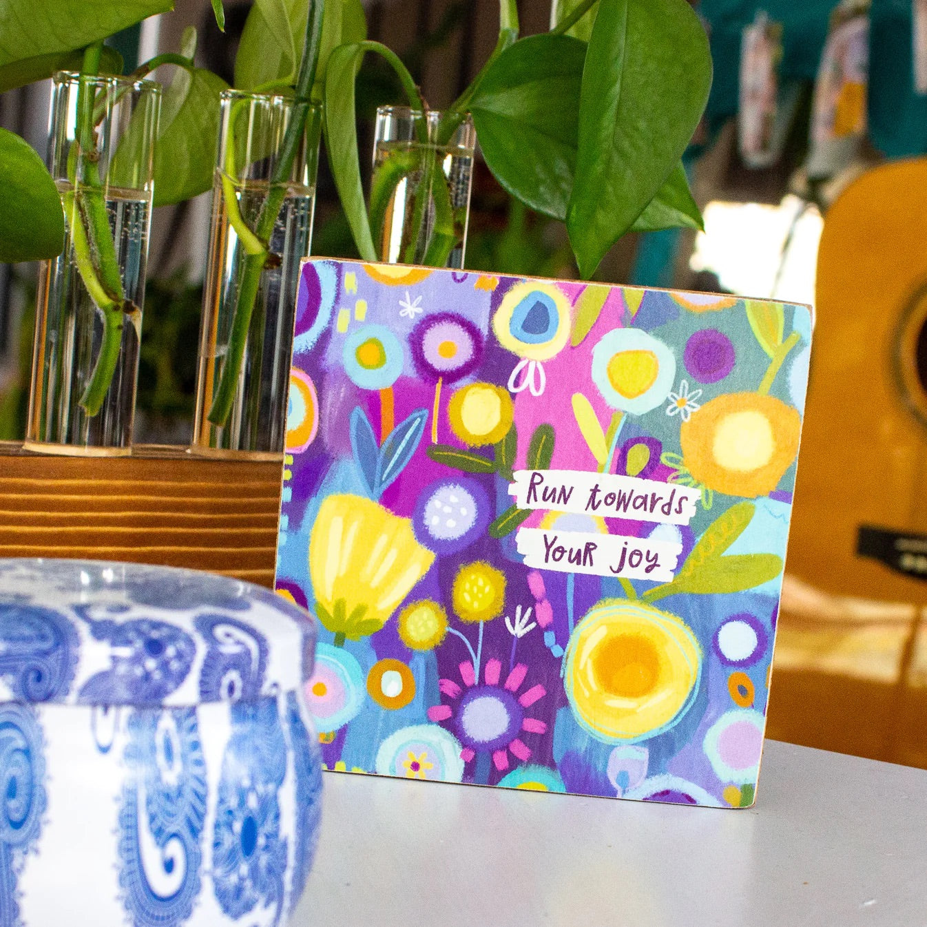 Meet THE inspirational accent you've been searching for - and display it YOUR way! This is your perfect reminder to run towards your joy, and recharge yourself with what makes you...YOU! The vibrant hand illustrated design adds an adorable pop of color to home offices, dorm rooms - and even your bedside table! Pick a place in your home, car - even RV - where you'll see this message often...or gift it to someone who needs to hear it!
