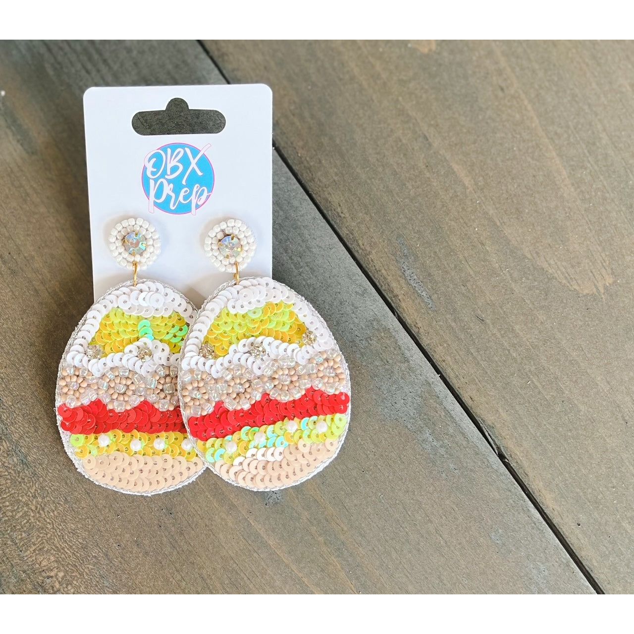 Celebrate Easter in style with these Sequin Easter Egg Dangle Earrings! Hand-sewn with shimmering sequins in vibrant spring colors, these festive statement earrings are the perfect way to add a touch of sparkle to your Easter outfit. The lightweight felt backing ensures comfortable all-day wear, while the post-back closure keeps them secure.