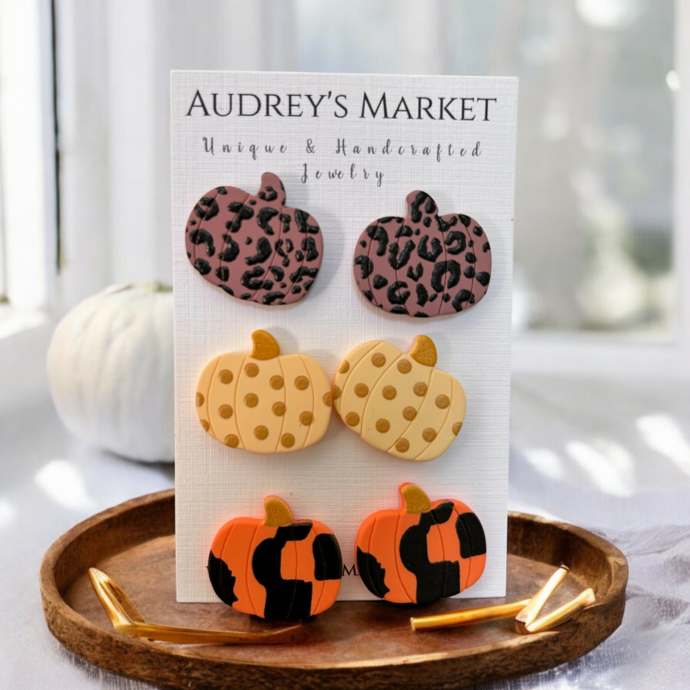Embrace the Autumn Vibes with Our Fall Pumpkin Clay Stud Earrings Set!