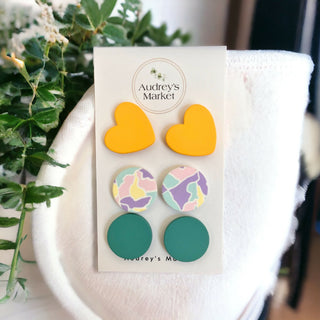 Introducing Our Colorful Clay Stud Earring Set: A Trio of Delightful Style Statements!