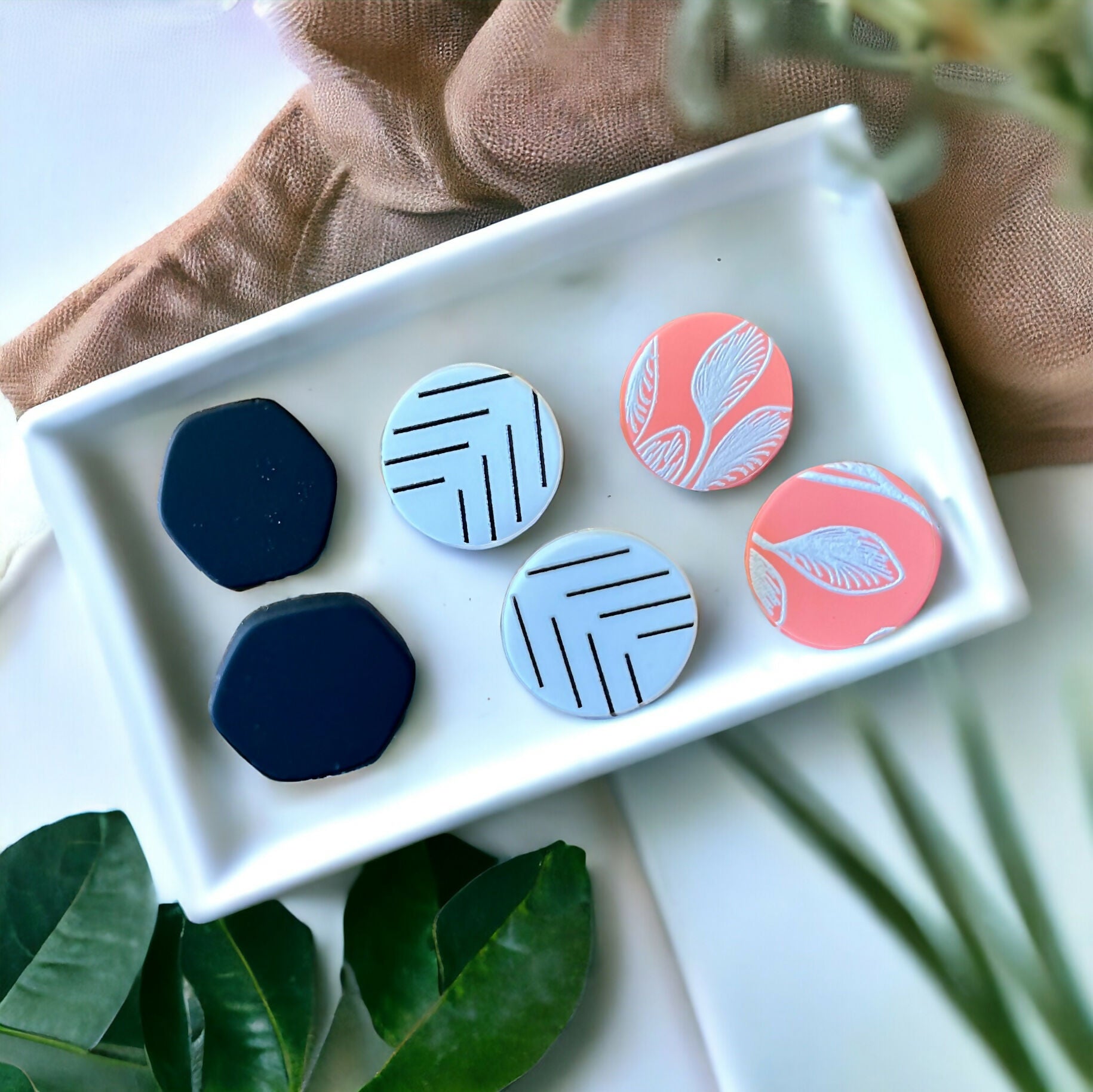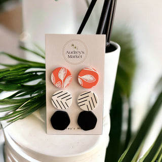 Elevate your accessory game with our vibrant Spring Clay Stud Earring Set, featuring three charming studs in an array of eye-catching colors. Whether you're looking to make a subtle statement with a single stud or mix things up with an eclectic combination, our versatile earring set offers endless styling possibilities. Perfect for adding a touch of whimsy to your everyday look or complementing a special occasion ensemble, these studs are sure to become your go-to accessory for any occasion.