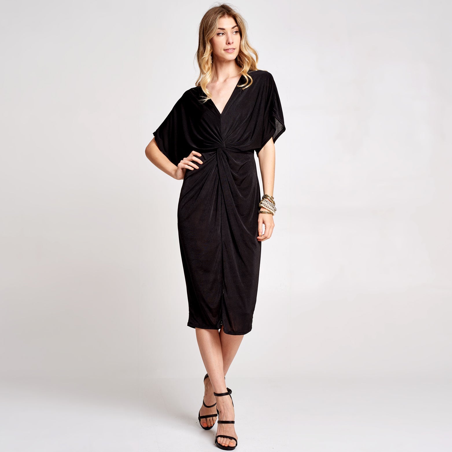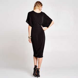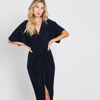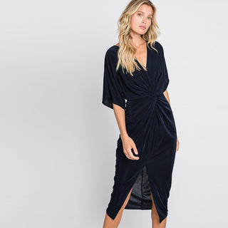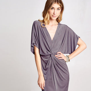 A new version of Kimono sleeve dress for our fans to love! Featuring twist-front, slit hem, and perfect length that is flattering and forgiving. Made of silky soft fabric that drapes very well over your feminine silhouette.