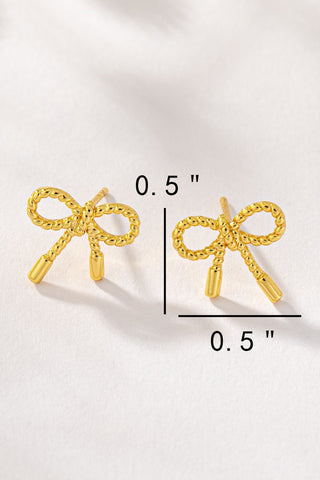 Elevate your style with these elegant small textured brass bow stud earrings. Perfect for adding a touch of sophistication to any outfit, these earrings feature a delicate bow design crafted from high-quality brass with a textured finish. Ideal for both casual and formal occasions.