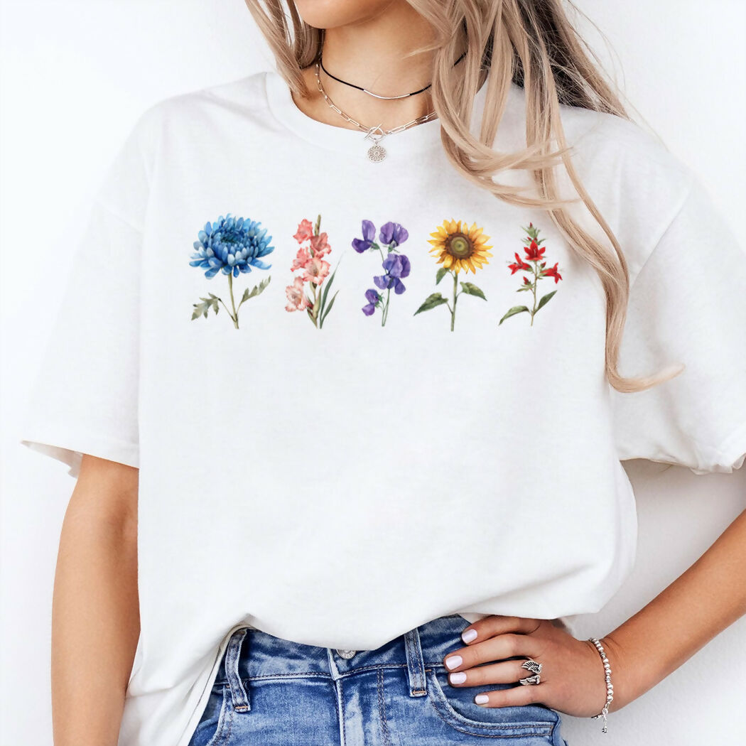 Introducing our Small Wildflowers graphic tee. This unique and original design is a uni-sex fit. Our graphic tees are made using ultra soft and comfortable cotton based tees, ensuring a cozy fit for all-day wear. Our professional printing process guarantees vibrant colors that won't fade, allowing you to enjoy this fun design for many years to come.