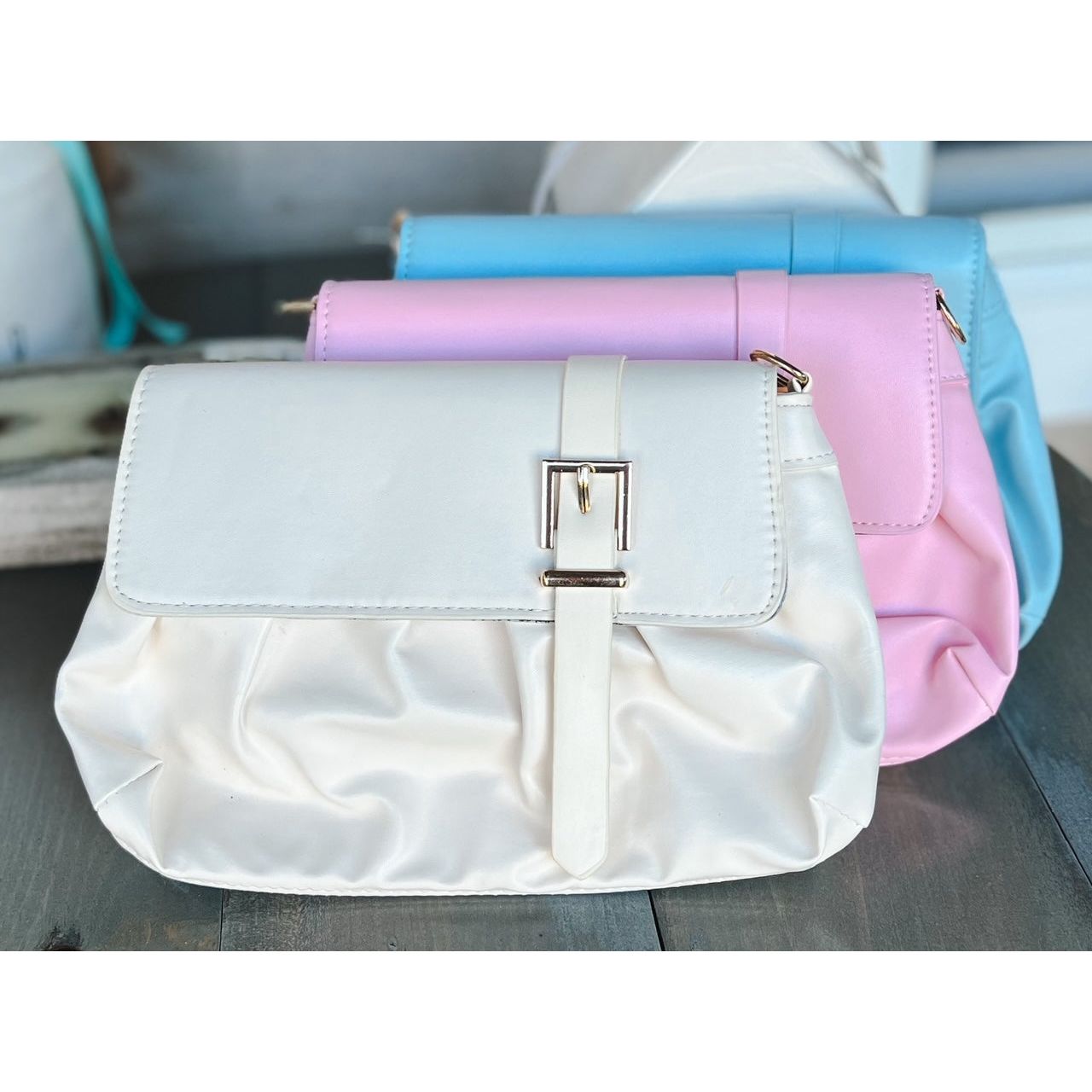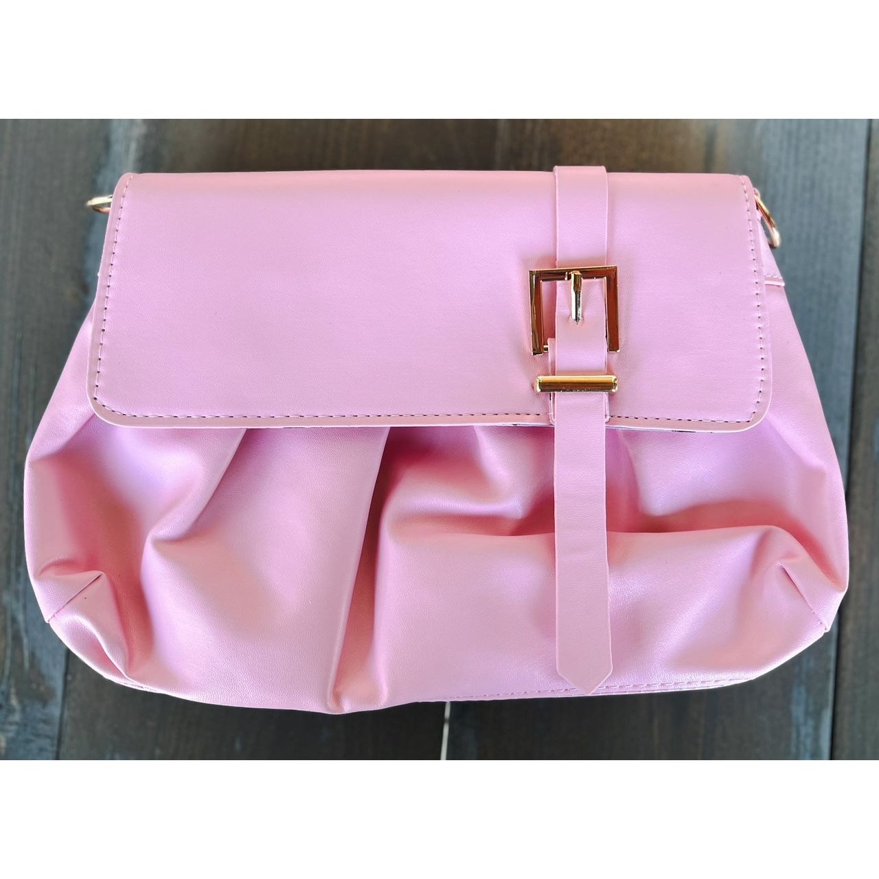 Spring Vegan Leather Handbag with Front Buckle and Two Straps Interchanging Straps.
