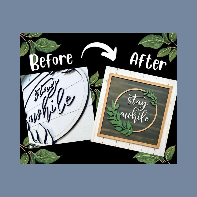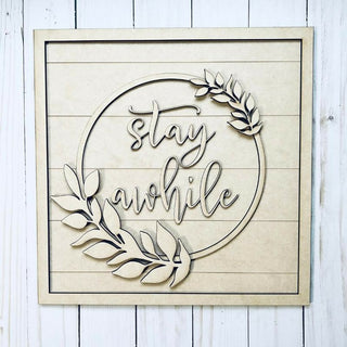 Create a warm and inviting atmosphere in your home with our "Stay Awhile" DIY Craft Kit! This charming kit allows you to assemble and paint a beautiful circular design adorned with lush greenery, complemented by the inviting words "Stay Awhile." Perfect for adding a touch of elegance and hospitality to any room, this kit provides everything you need (except for paint) to craft a welcoming piece of decor. Whether you're looking to enhance your own space or searching for a thoughtful gift, this kit is a lovely way to express a message of comfort and warmth.