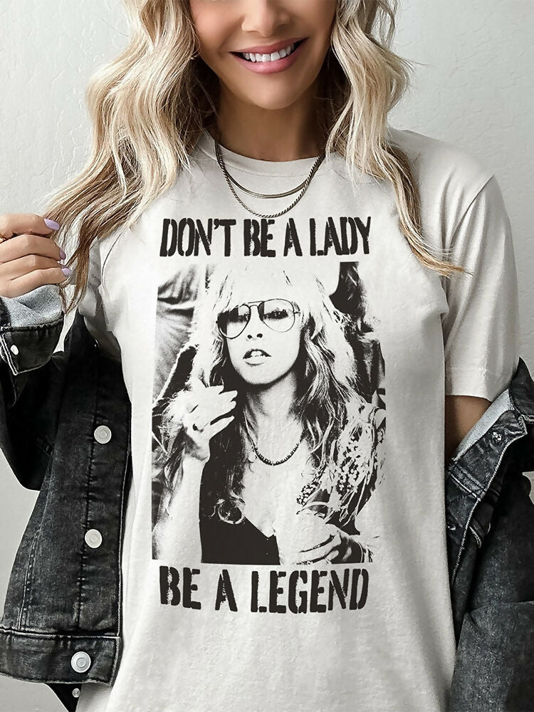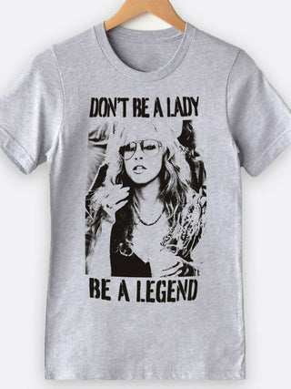 Introducing our Don't Be A Lady Be A Legend concert graphic tee. This unique and original design is perfect for both adults and youth. Our graphic tees are made using ultra soft and comfortable cotton based tees, ensuring a cozy fit for all-day wear. Our professional printing process guarantees vibrant colors that won't fade, allowing you to enjoy this fun design for many years to come.