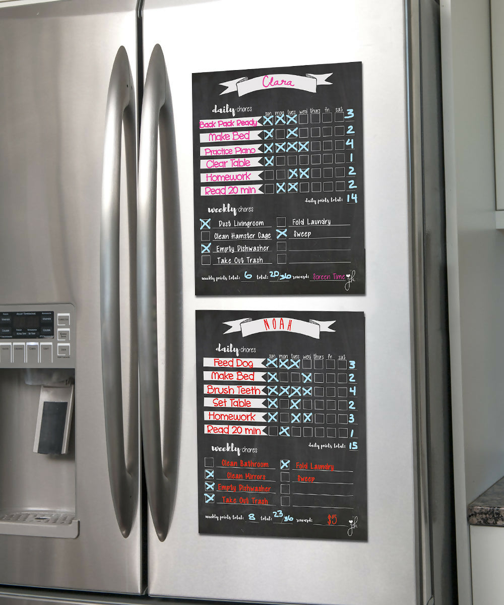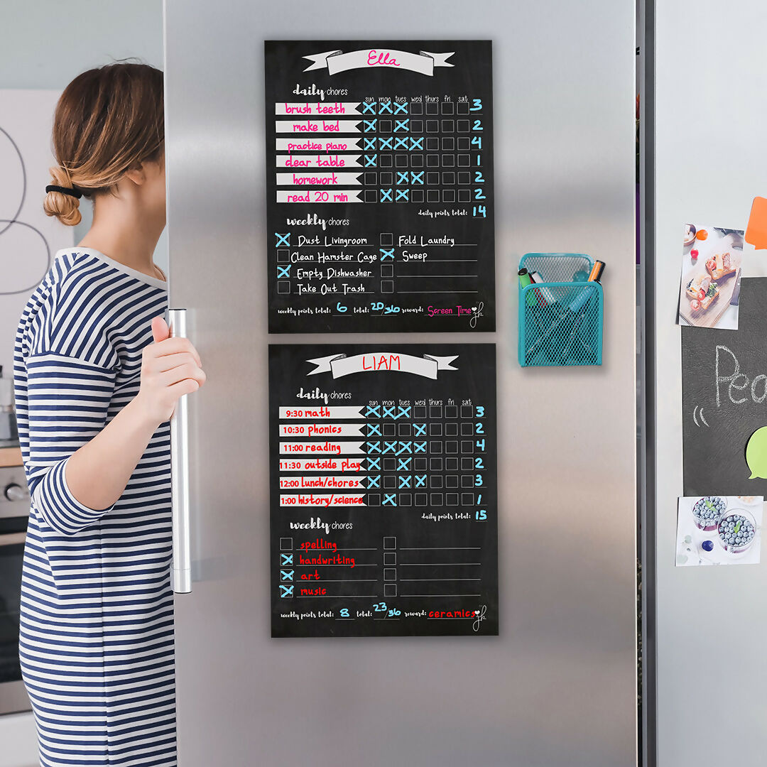 With an engaging design and included colorful chalk markers, these charts make it easy for kids to track their progress and earn rewards for their hard work. Made from high-quality materials and built to last, our charts are perfect for busy families who want to simplify their daily Summer routines. Plus, with the convenience of magnetic backing, you can easily display them on your fridge or other metal surfaces. Order your Chore Chart Bundle today and start enjoying a more organized and efficient household!