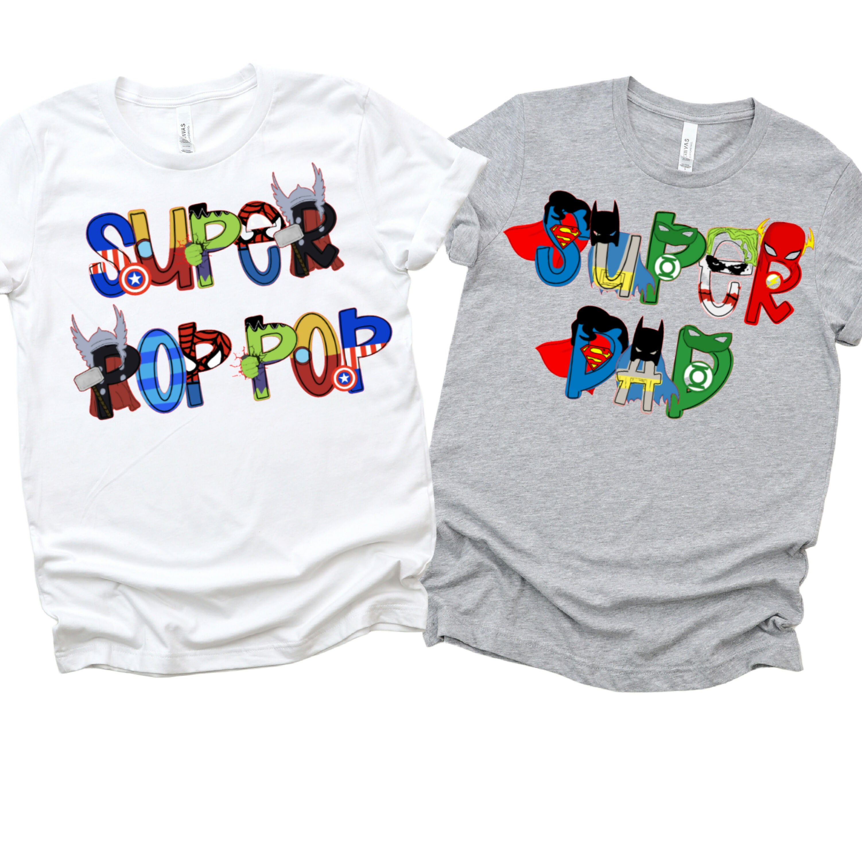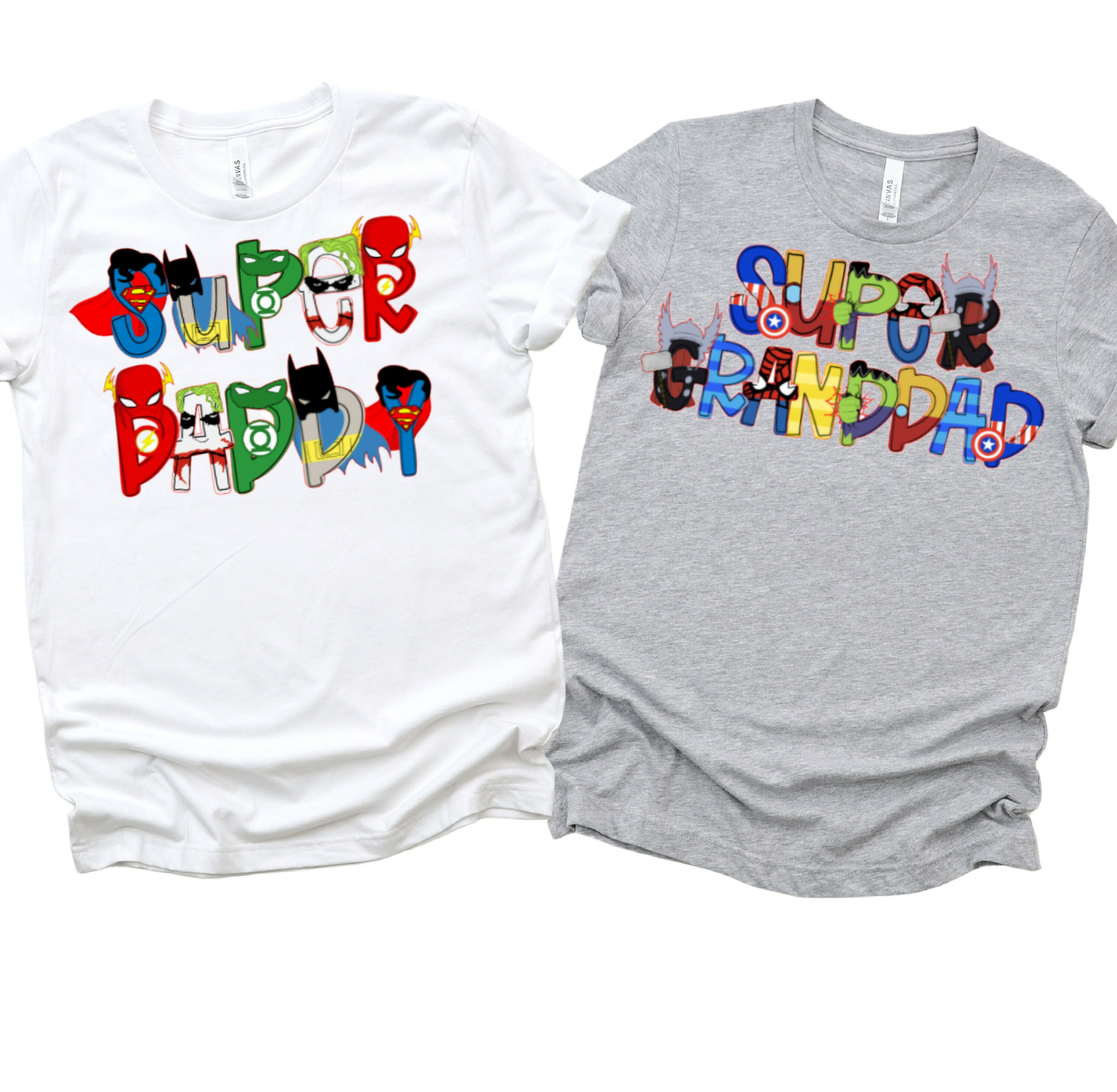 Celebrate your SUPER dad, grandad, poppop, or any father figure in our life with this custom SUPER hero tee. Is he a Marvel fan, or a DC fan? You can choose your team and we will design a custom shirt for him.
