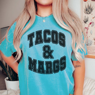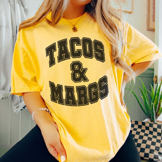 Why opt for ordinary when you can wear your love for tacos and margaritas with style? Treat yourself to the "Tacos & Margs" Comfort Color Tee from Limeberry Designs and let your festive spirit shine!