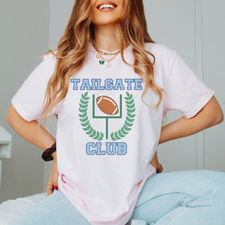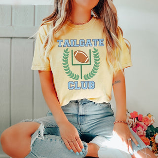 Capture the excitement of game day with our "Tailgate Club" Comfort Color Tee. Whether you're cheering at the stadium or hosting a backyard tailgate bash, this tee ensures you're game day ready with style.