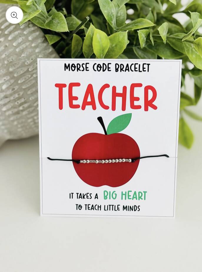 Surprise that special TEACHER with this darling, on trend morse code, "TEACHER" bracelet. Adjustable in size for a loose/tight fit.