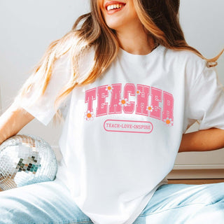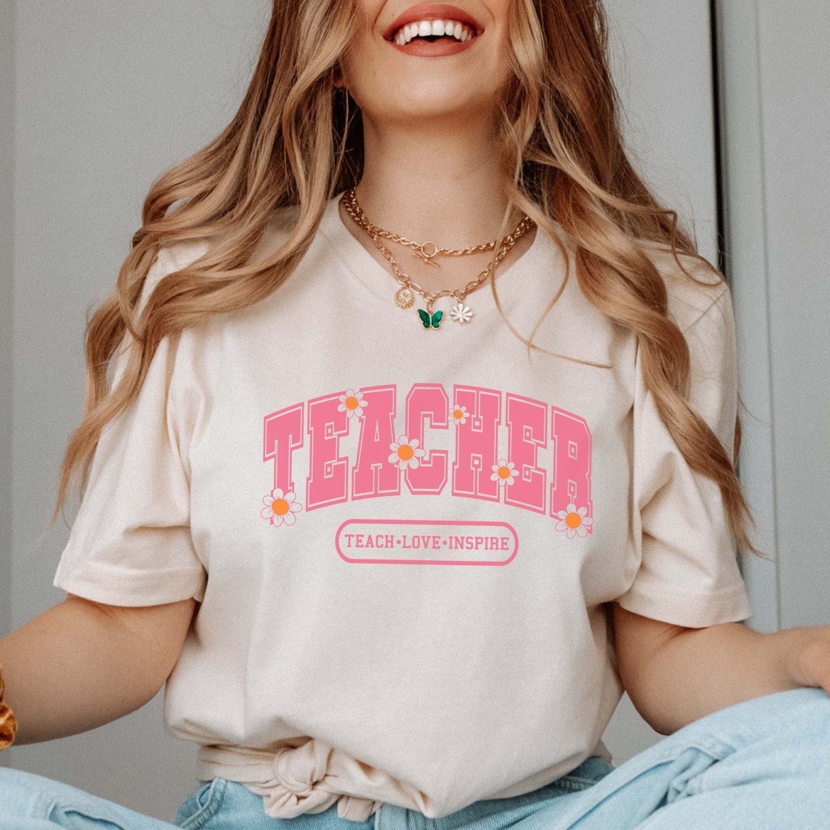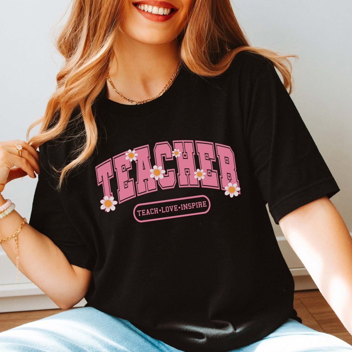 This floral graphic tee is more than just a fashion statement; it's a celebration of the love, inspiration, and dedication that you bring to the classroom every day. Its cheerful floral motif combined with an uplifting message makes it a delightful choice to wear during lessons, while grading, or at parent-teacher meetings.