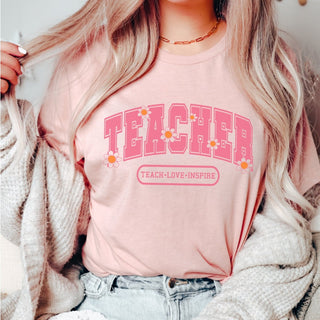 Calling all devoted teachers! The Teacher Floral - Teach Love Inspire Bella Tee is the perfect addition to your wardrobe. Designed with love for educators who are passionate about sharing positivity and encouragement, this tee is a wonderful way to express your commitment to your students and your profession.
